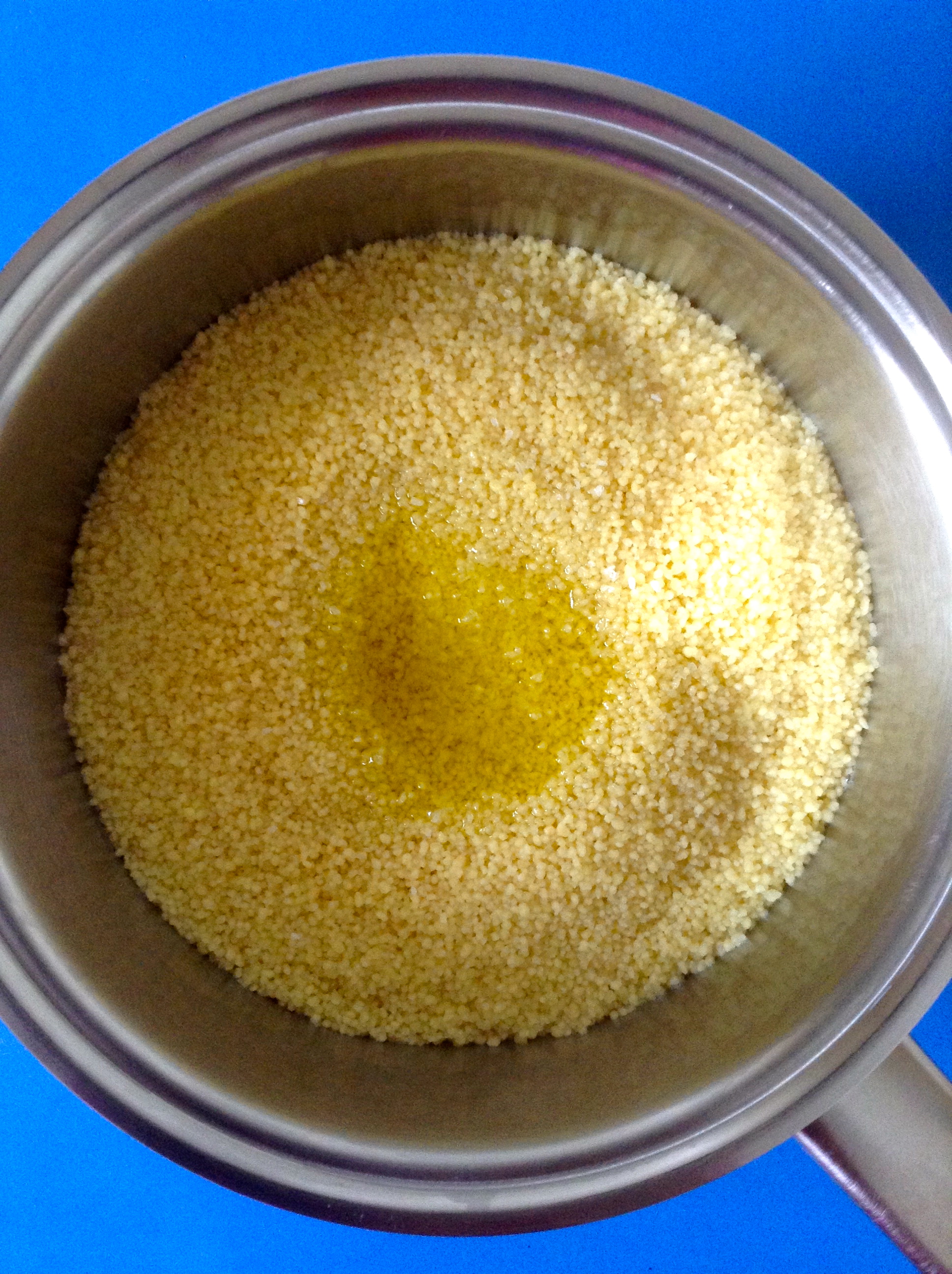 Añado la sal y un chorro generoso de aceite de oliva, y le doy unas vueltas hasta que queda suelto.