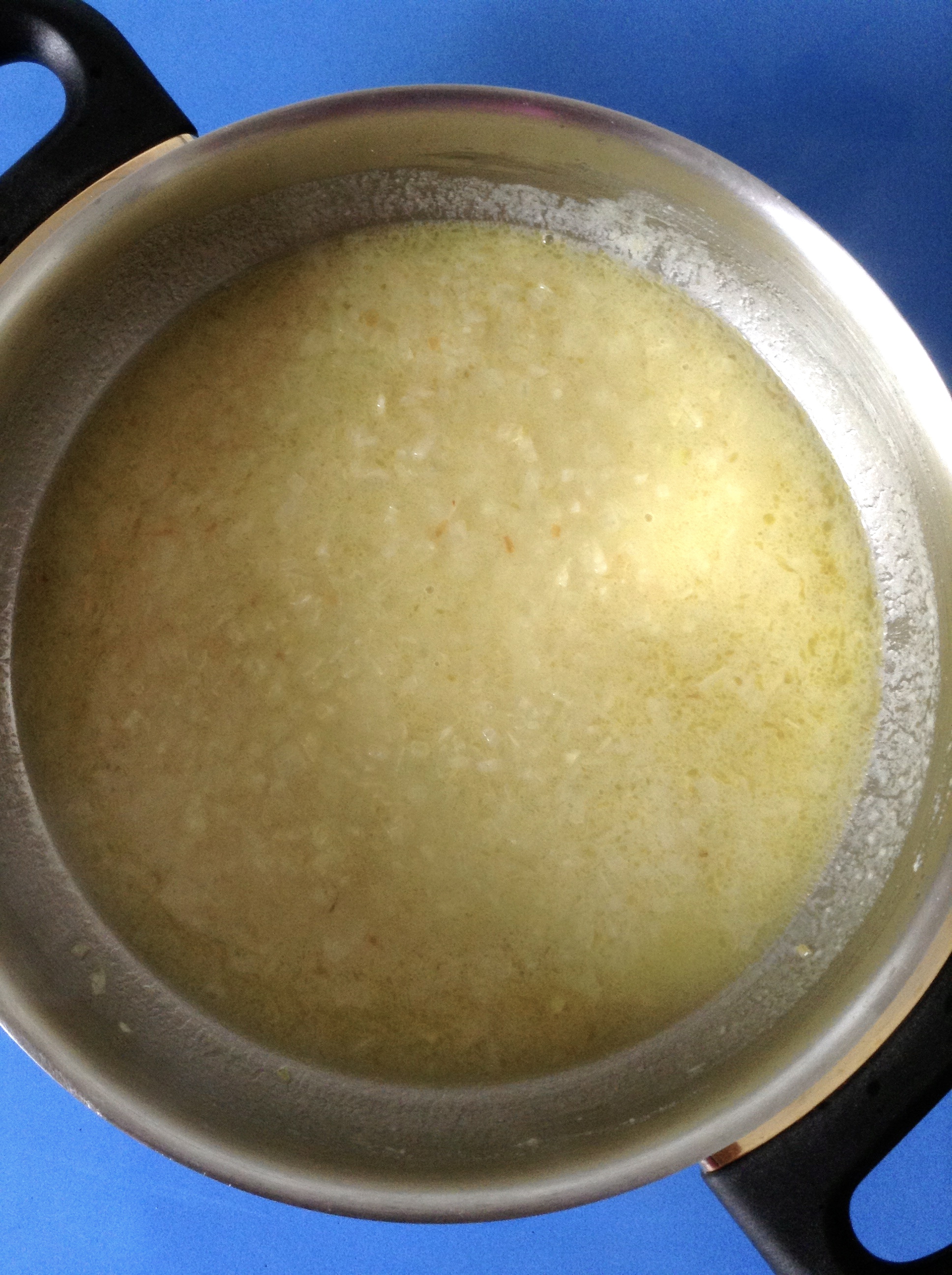 Pico la cebolla y el ajo, y los rehogo en una cazuela ancha con aceite de oliva.