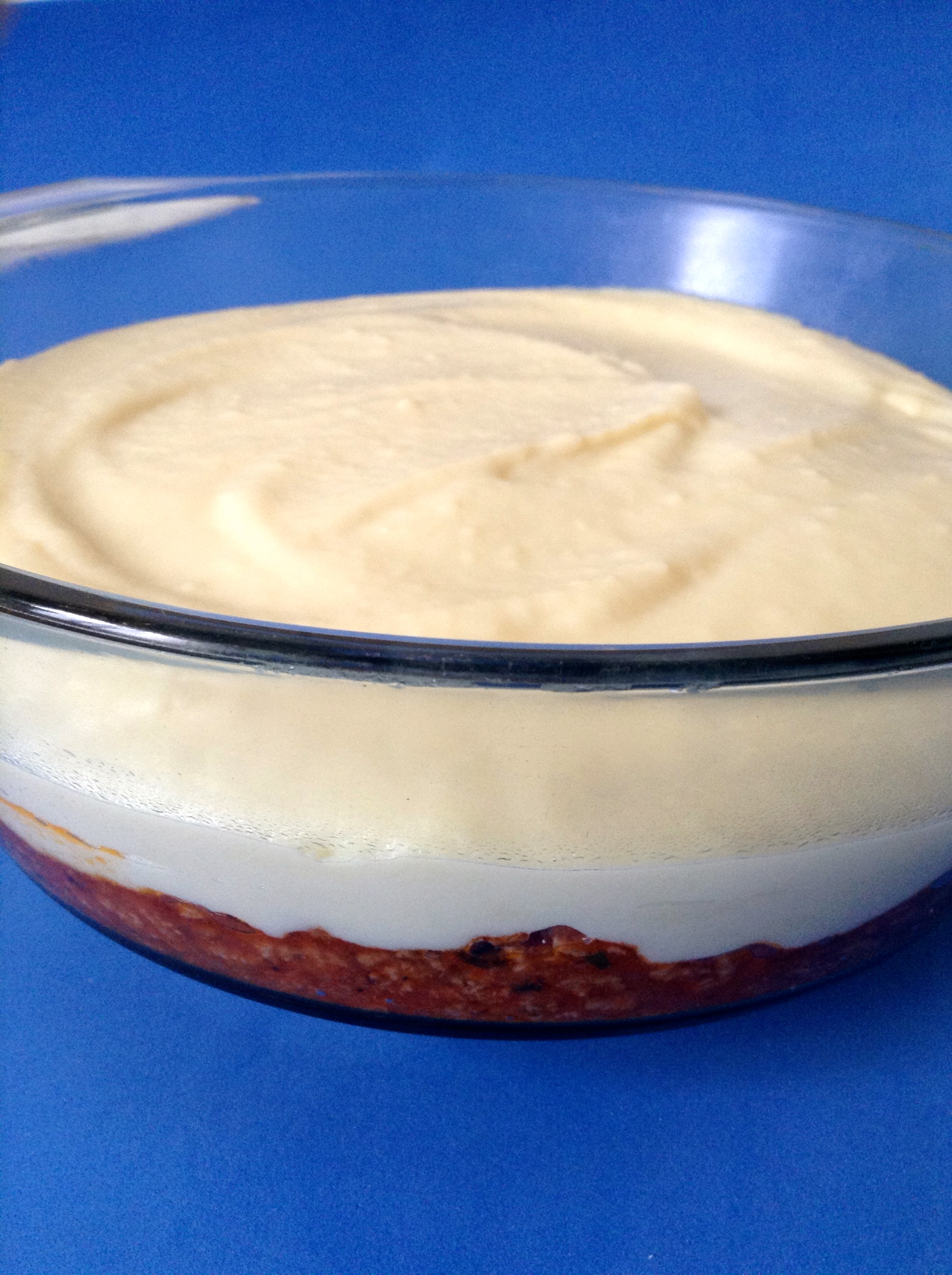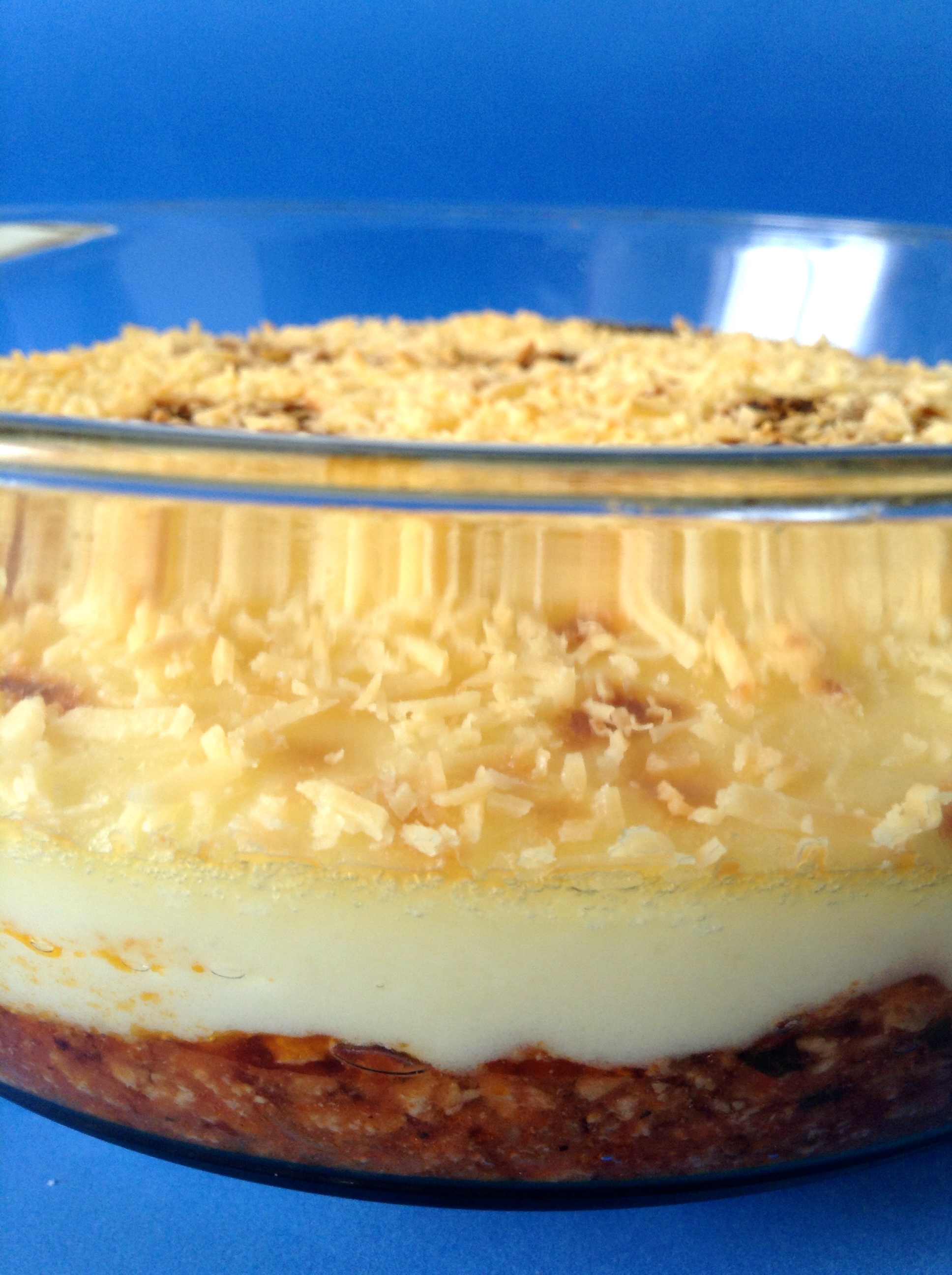 Extiendo el queso rallado por encima y lo gratino hasta que está bien dorado.