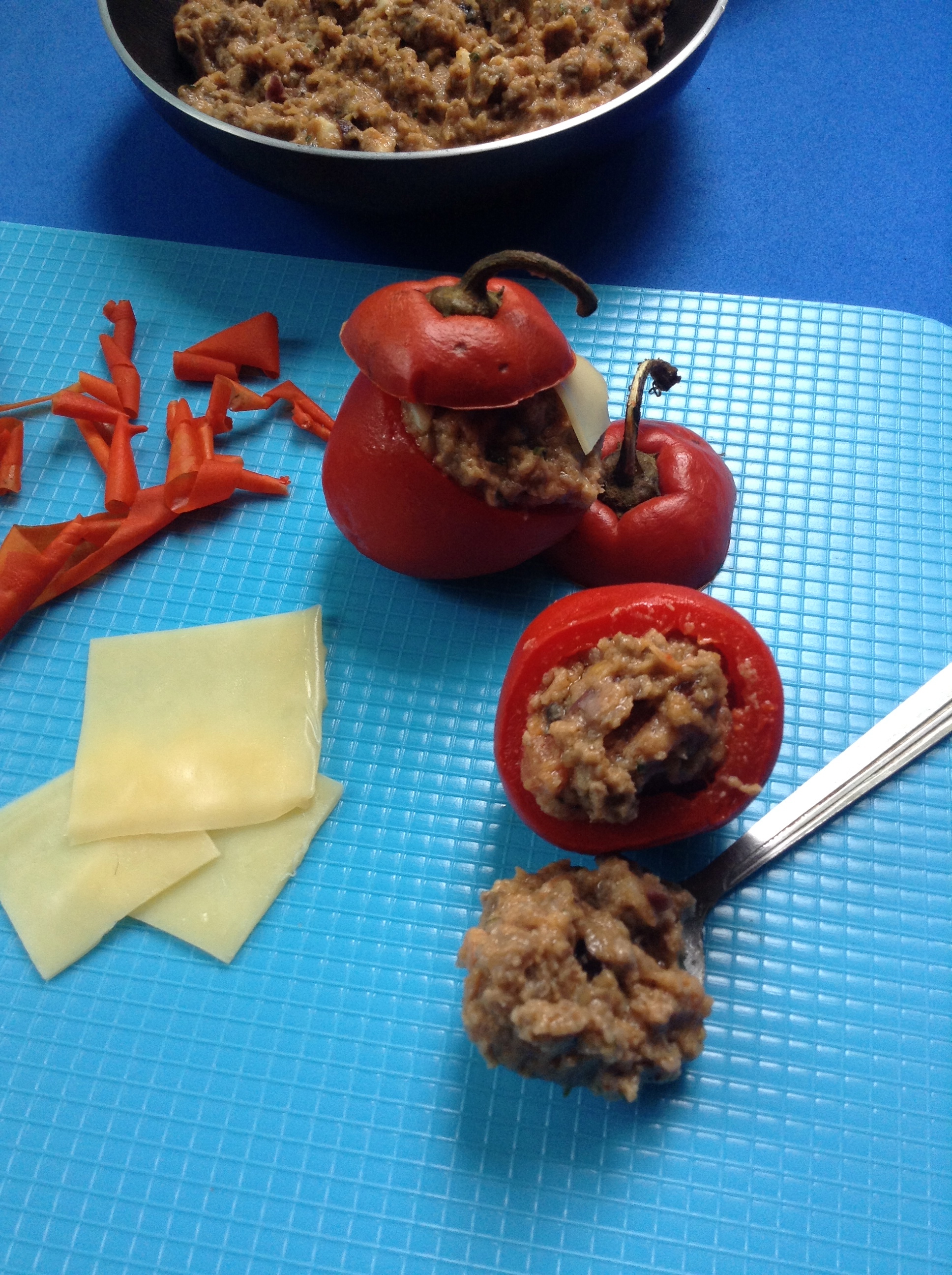 A veces, termino el plato metiendo los rocotos en el horno hasta que el queso se gratina.