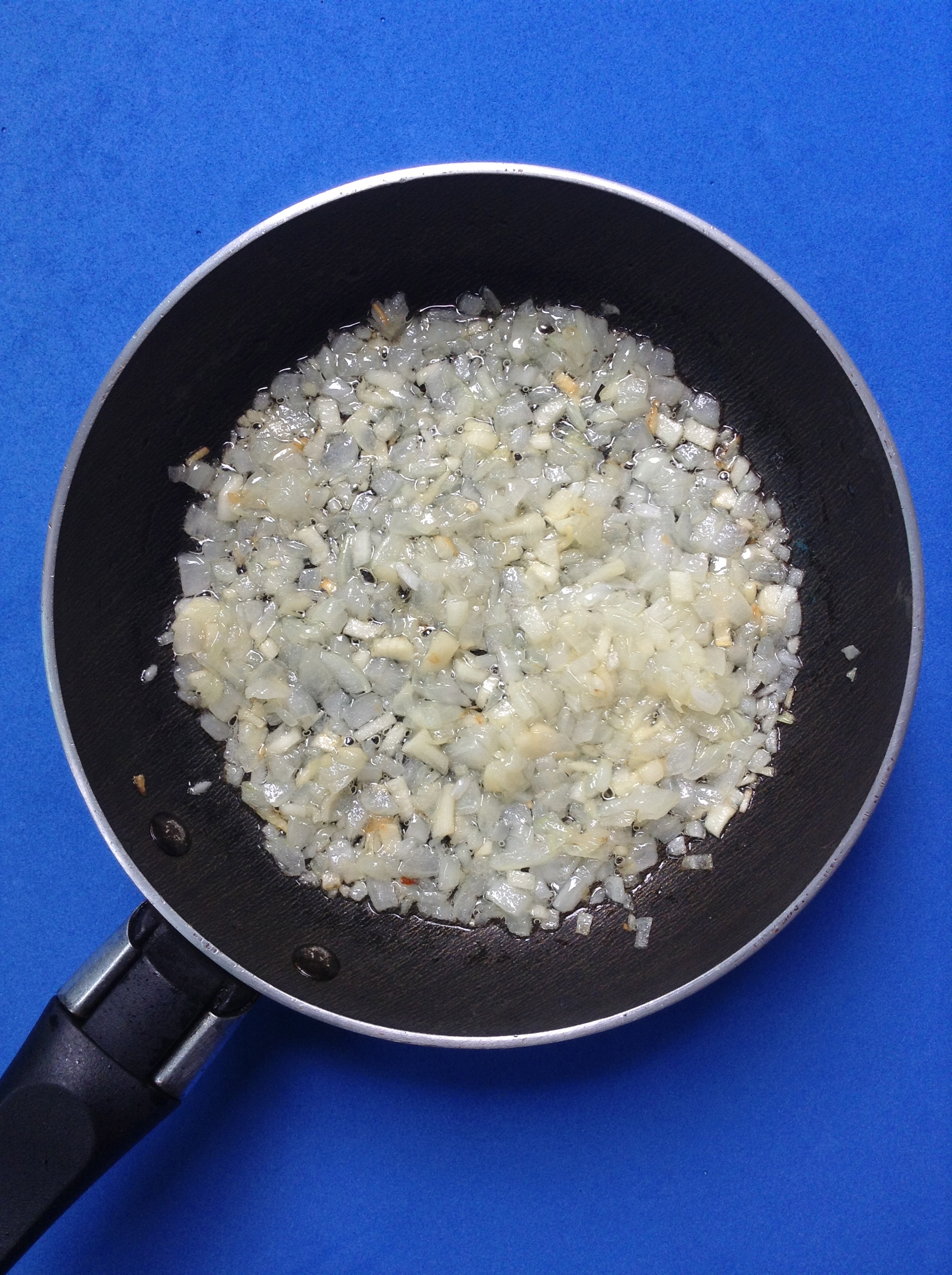 Empiezo picando las cebollas y los ajos, y los rehogo en una sartén con aceite de oliva.