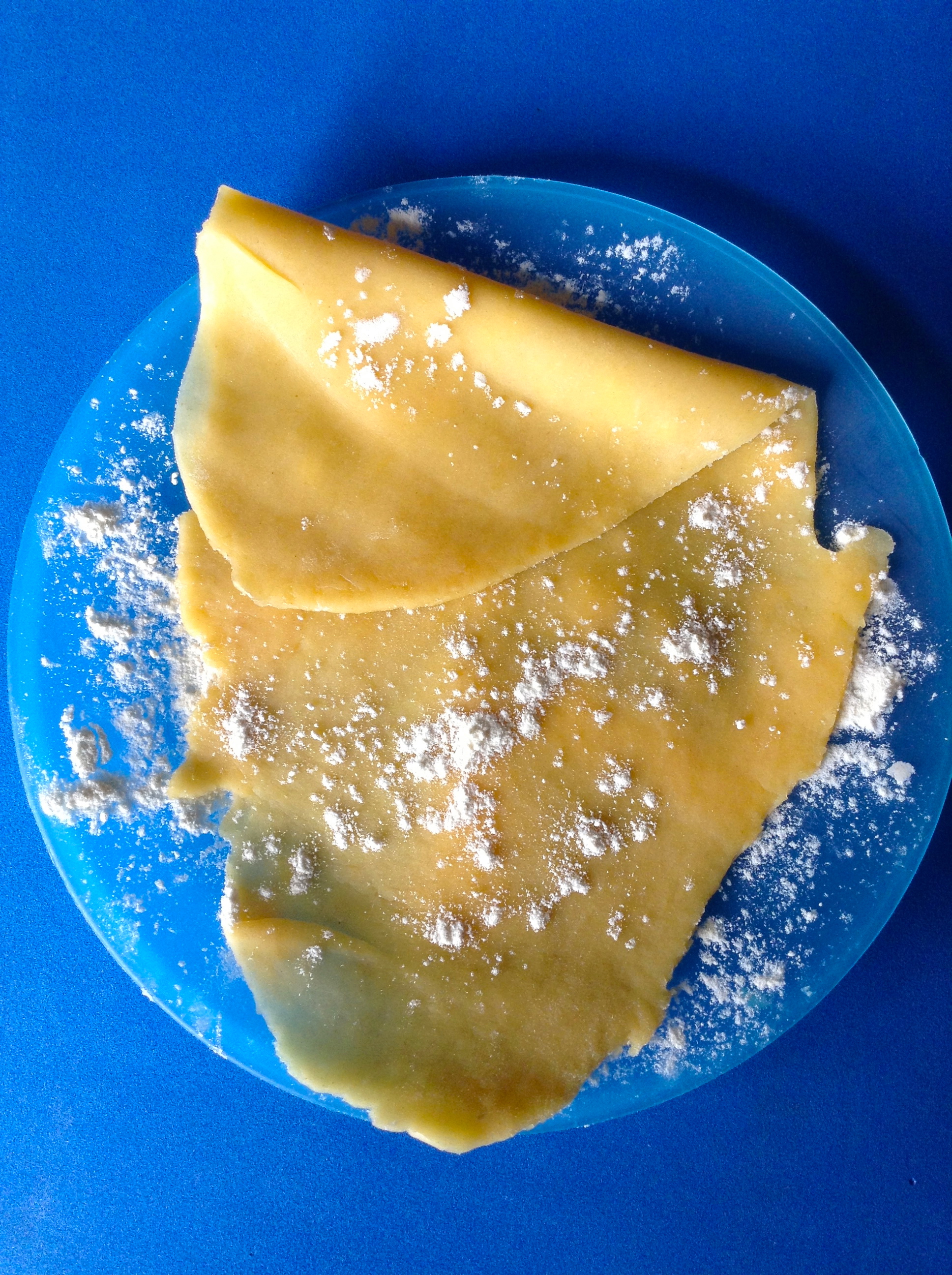 Entonces, las estiro con la ayuda de un rodillo hasta formar una lámina rectangular fina.