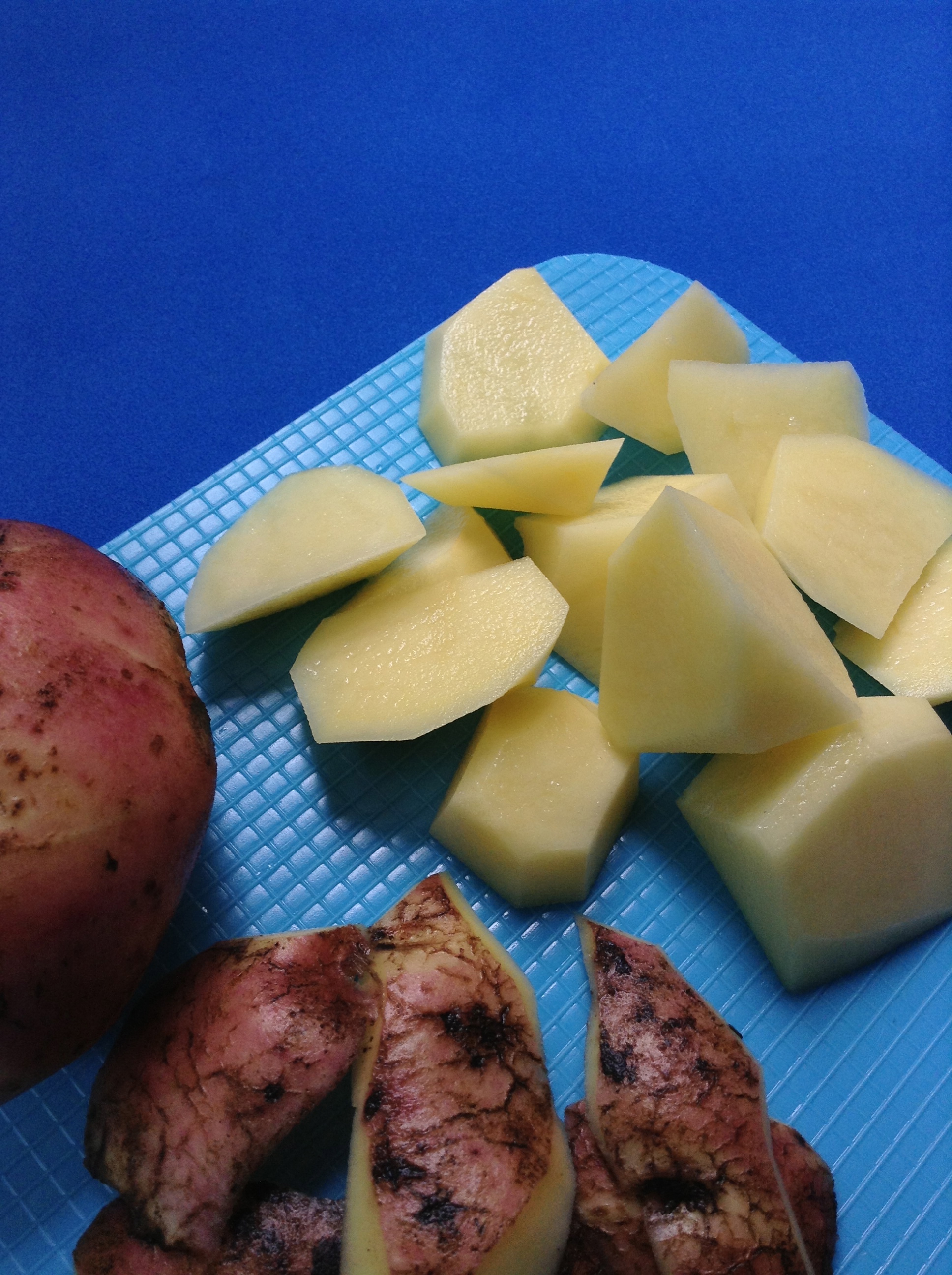 Al cabo de una hora, hecho las papas peladas y las arvejas. Si es necesario, añado un poco más de agua (la salsa debe ser jugosa).