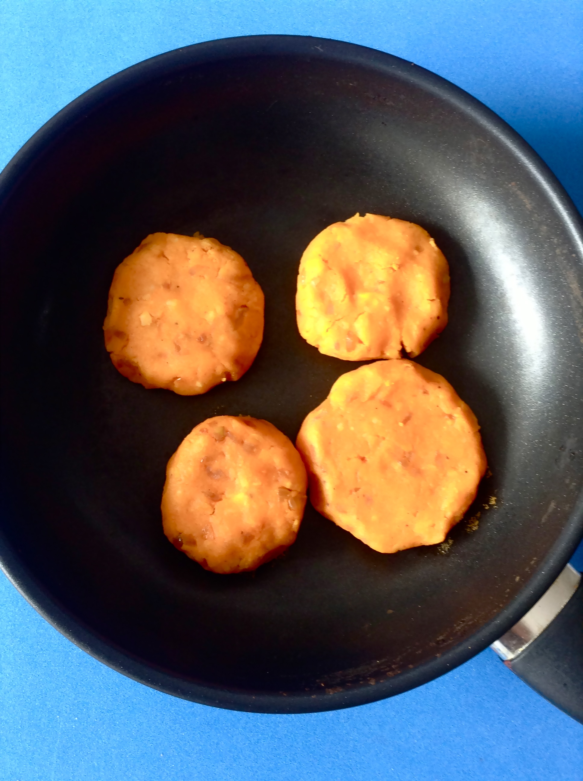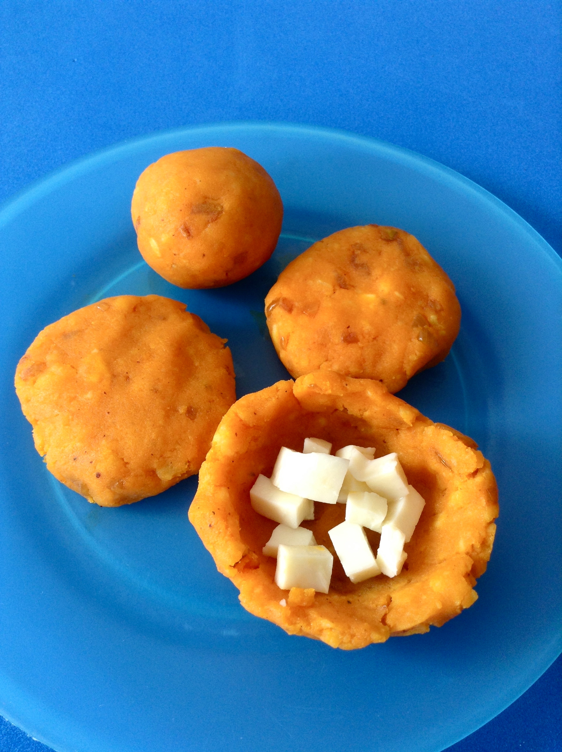 Formo pequeñas bolas con el puré de papa que relleno con el queso y luego aplano. Dejo reposar estas tortillas durante una media hora.