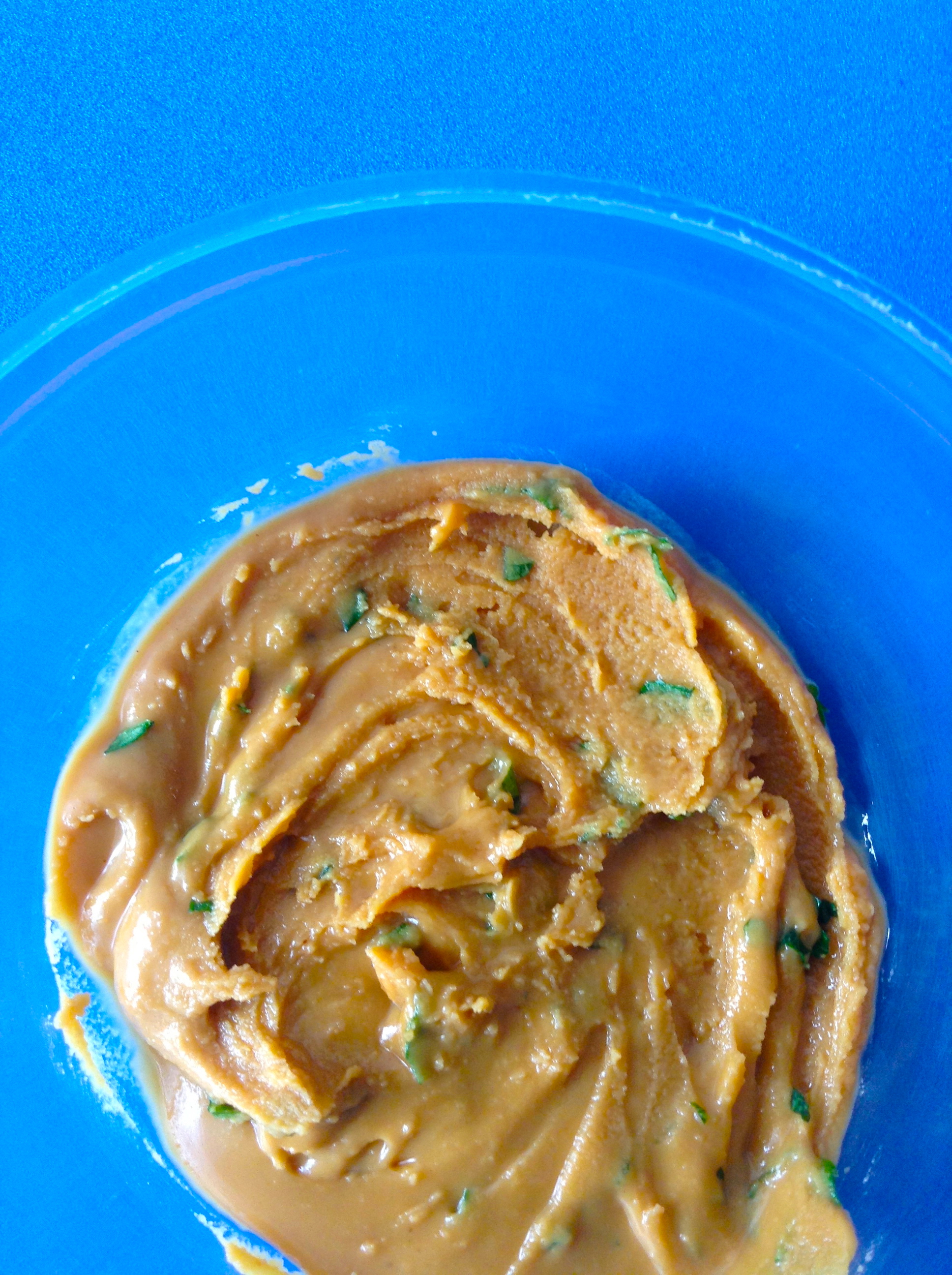 Mientras, pico el perejil y lo mezclo con la crema de maní.