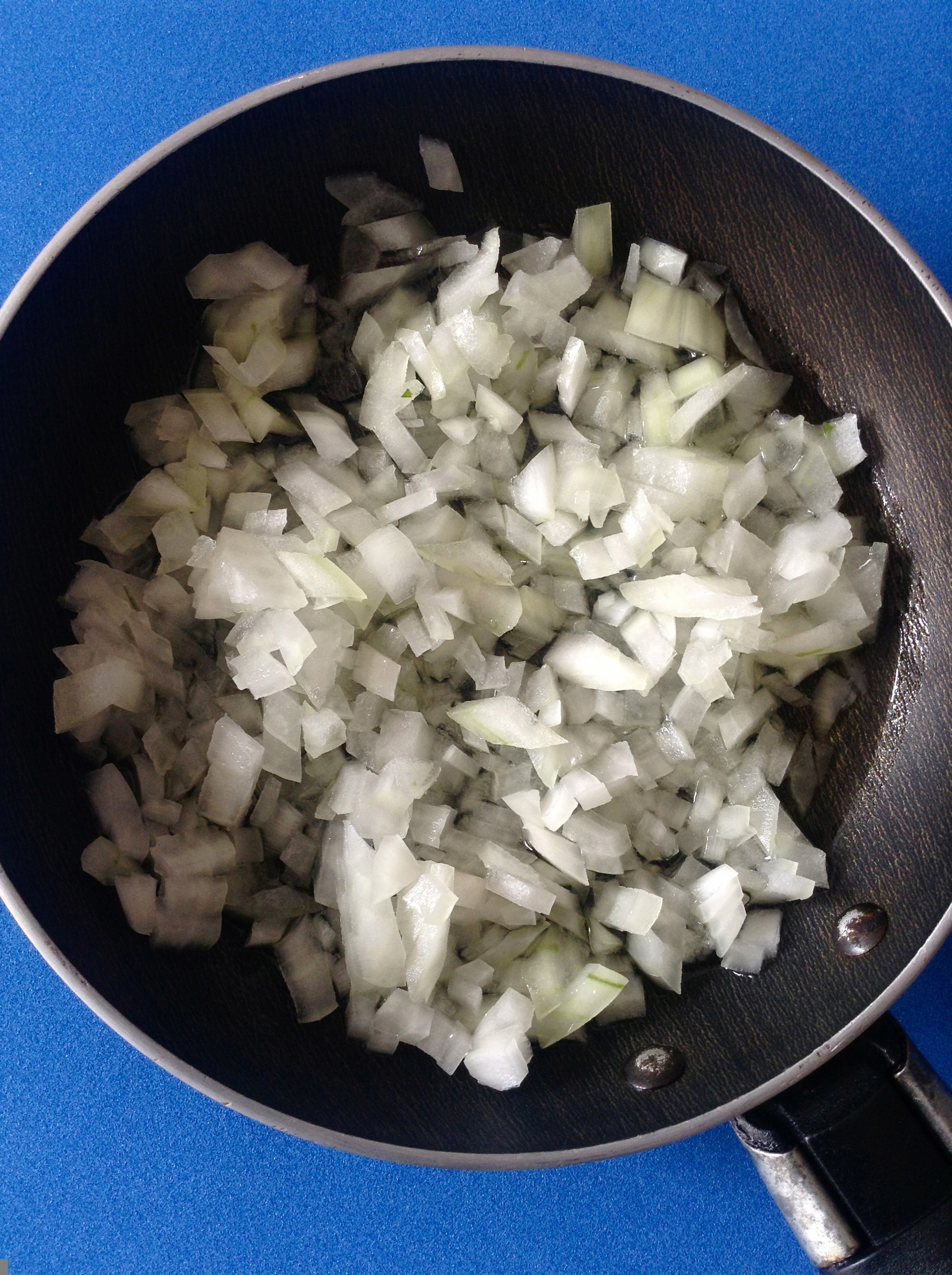 Si el achiote no está molido, lo rehogo durante un par de minutos en una sartén con aceite para que adquiera color. Lo cuelo y rehogo la cebolla en este aceite.