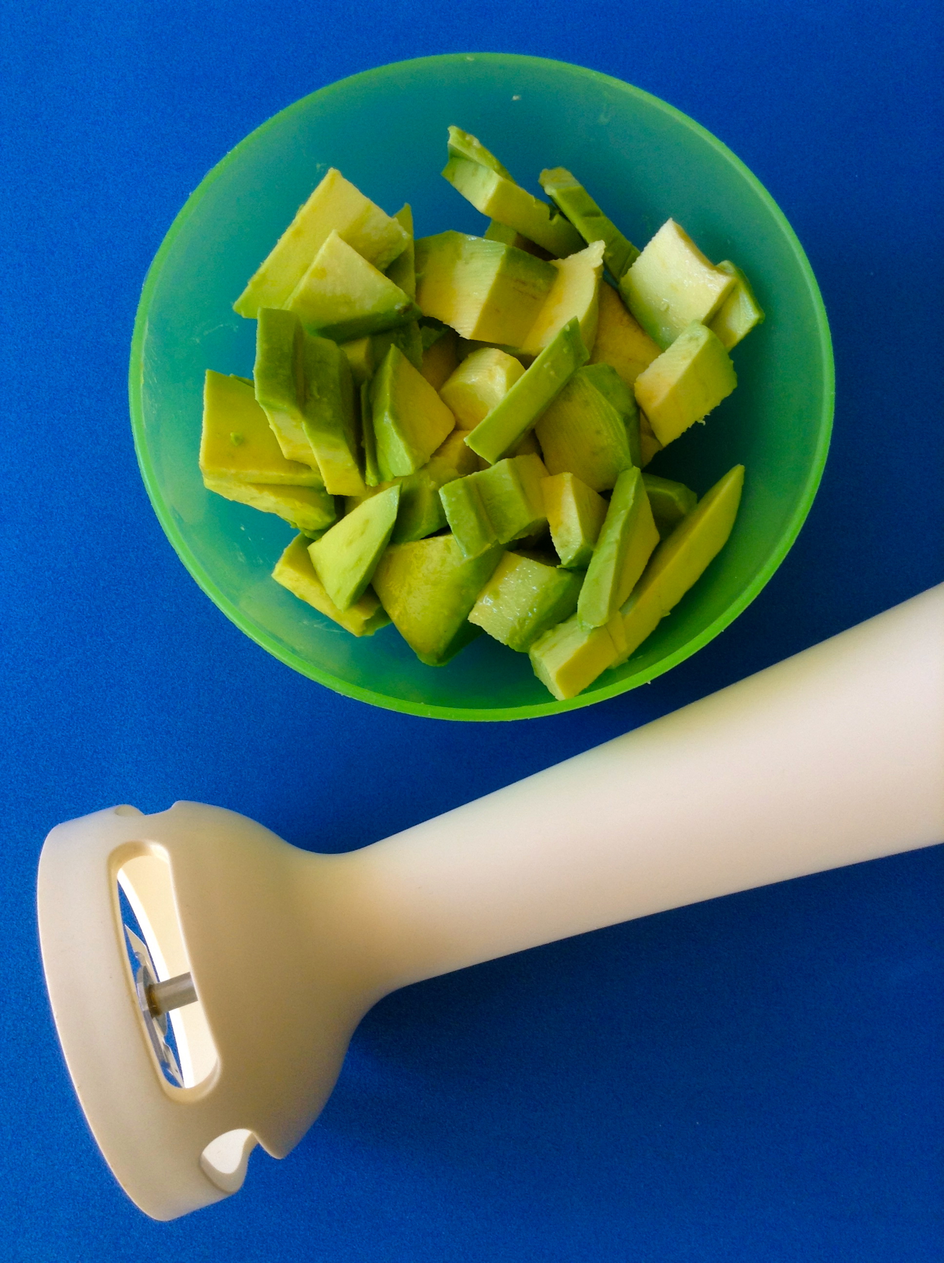 Luego, pelo los aguacates, les quito el hueso, los troceo y los bato.