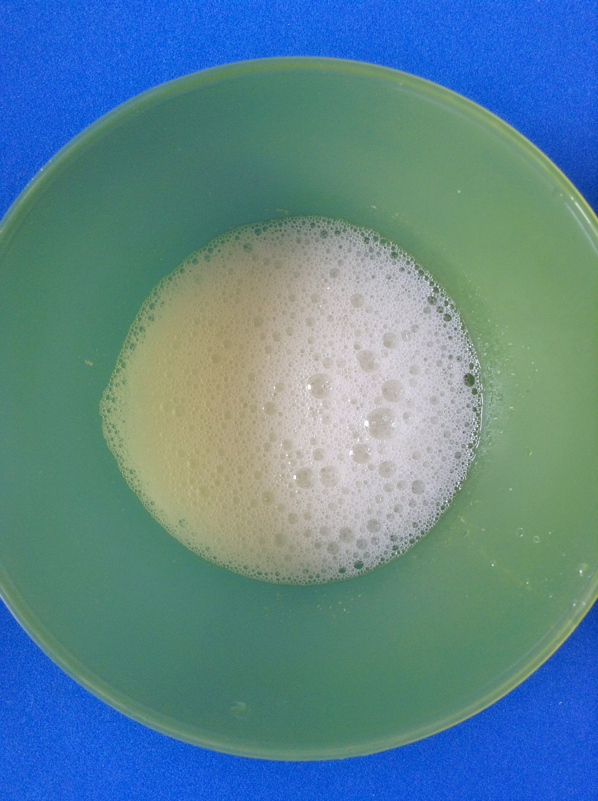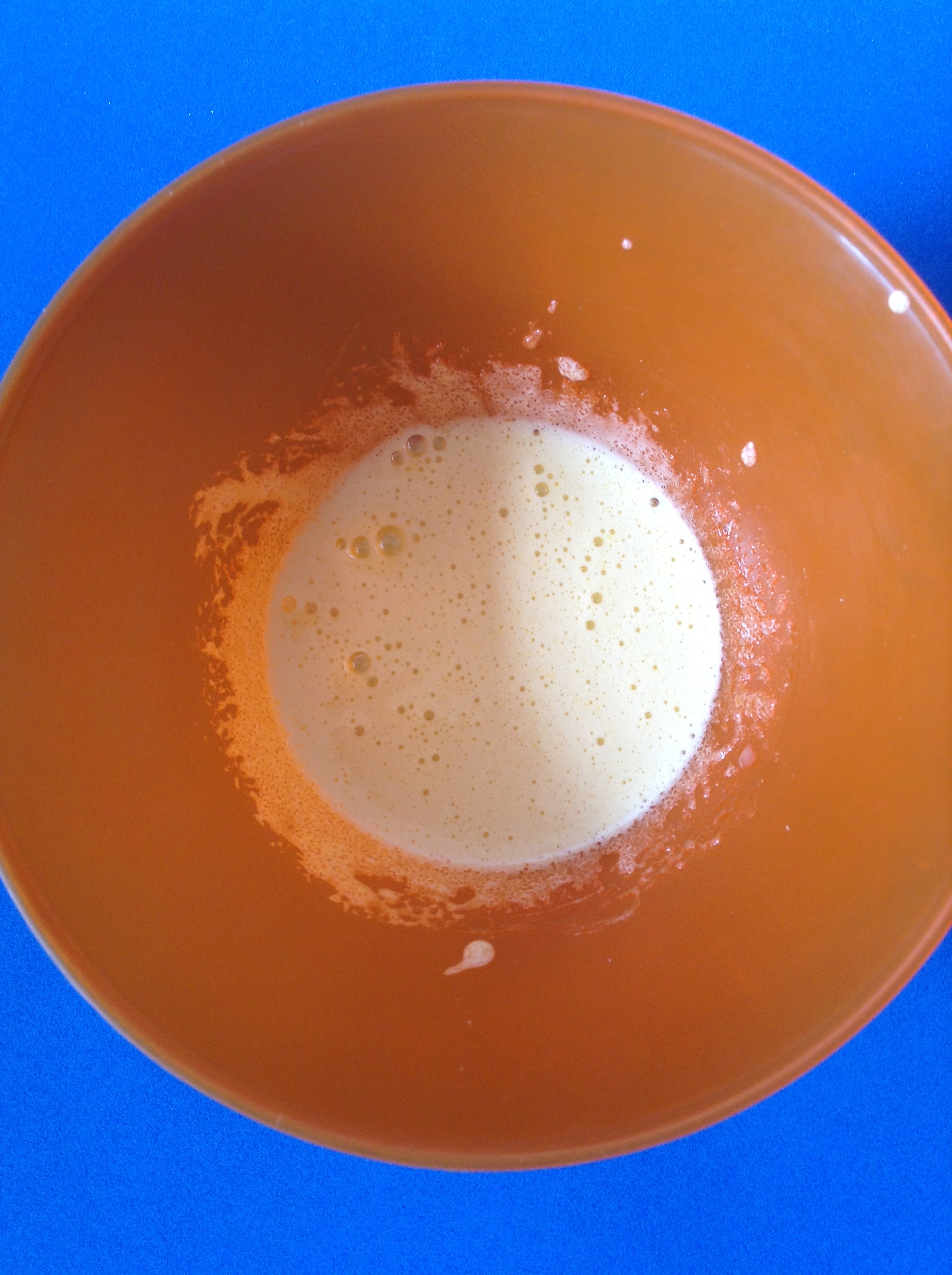 Bato las claras a punto de nieve y las vierto en el bol, mezclando todo con movimientos envolventes.