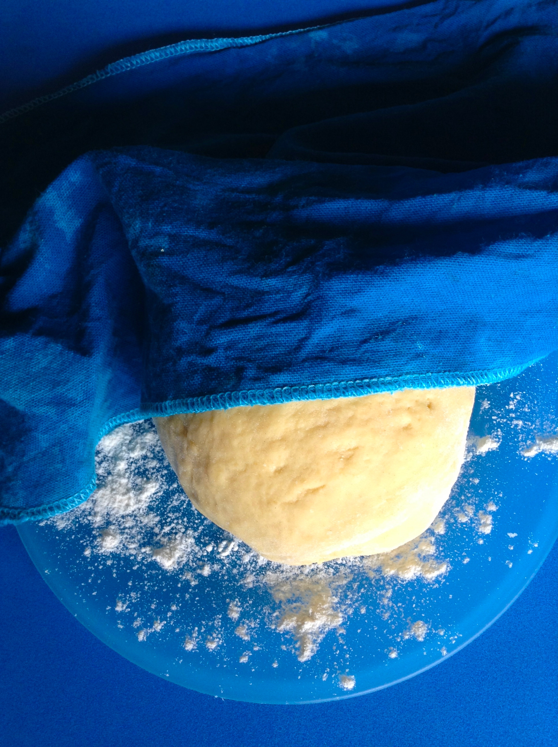Formo una bola y la tapo con un paño húmedo durante media hora.