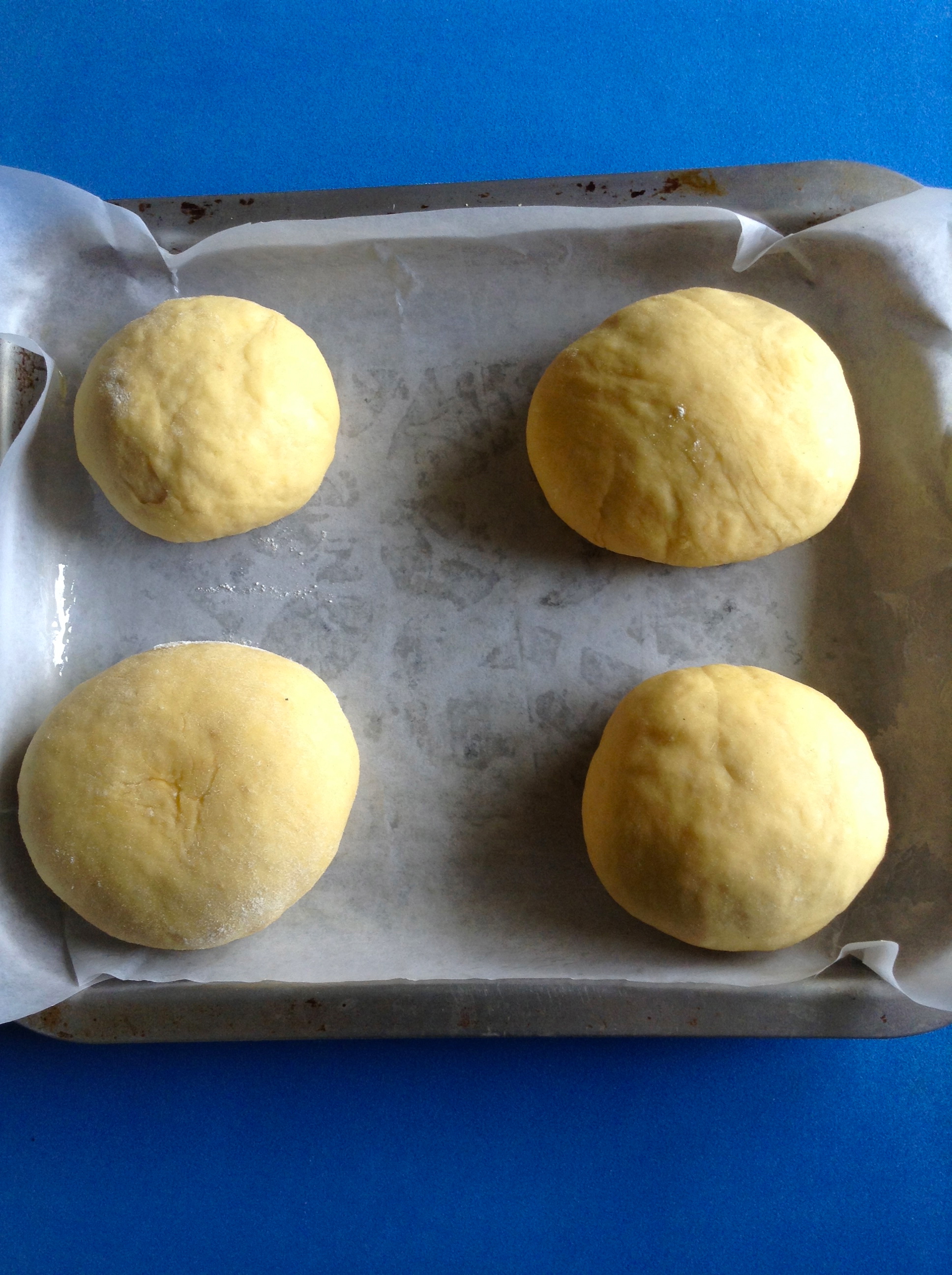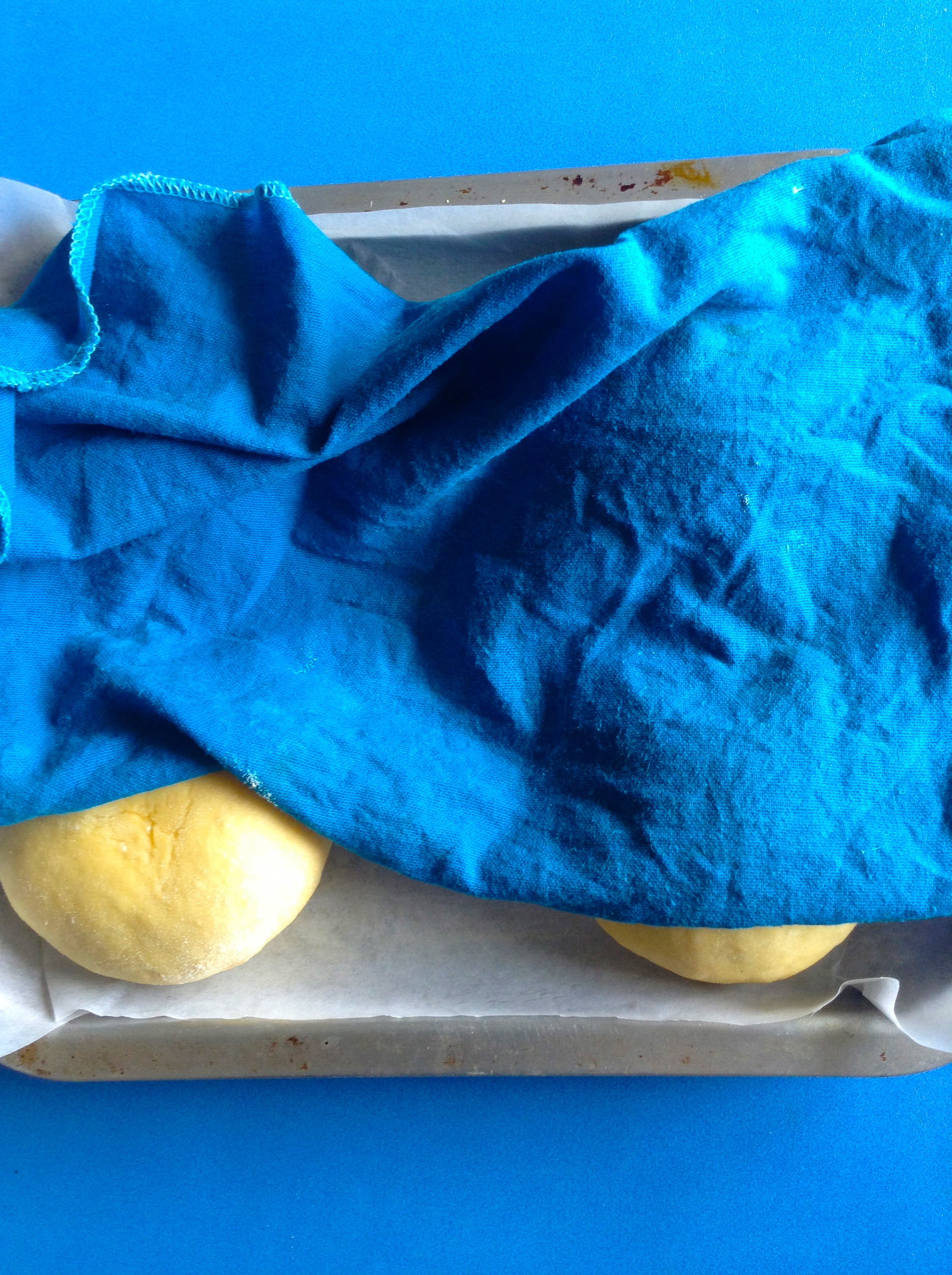 Coloco los bollos sobre una bandeja de horno, los tapo con el paño húmedo y los dejo fermentar durante otra media hora.