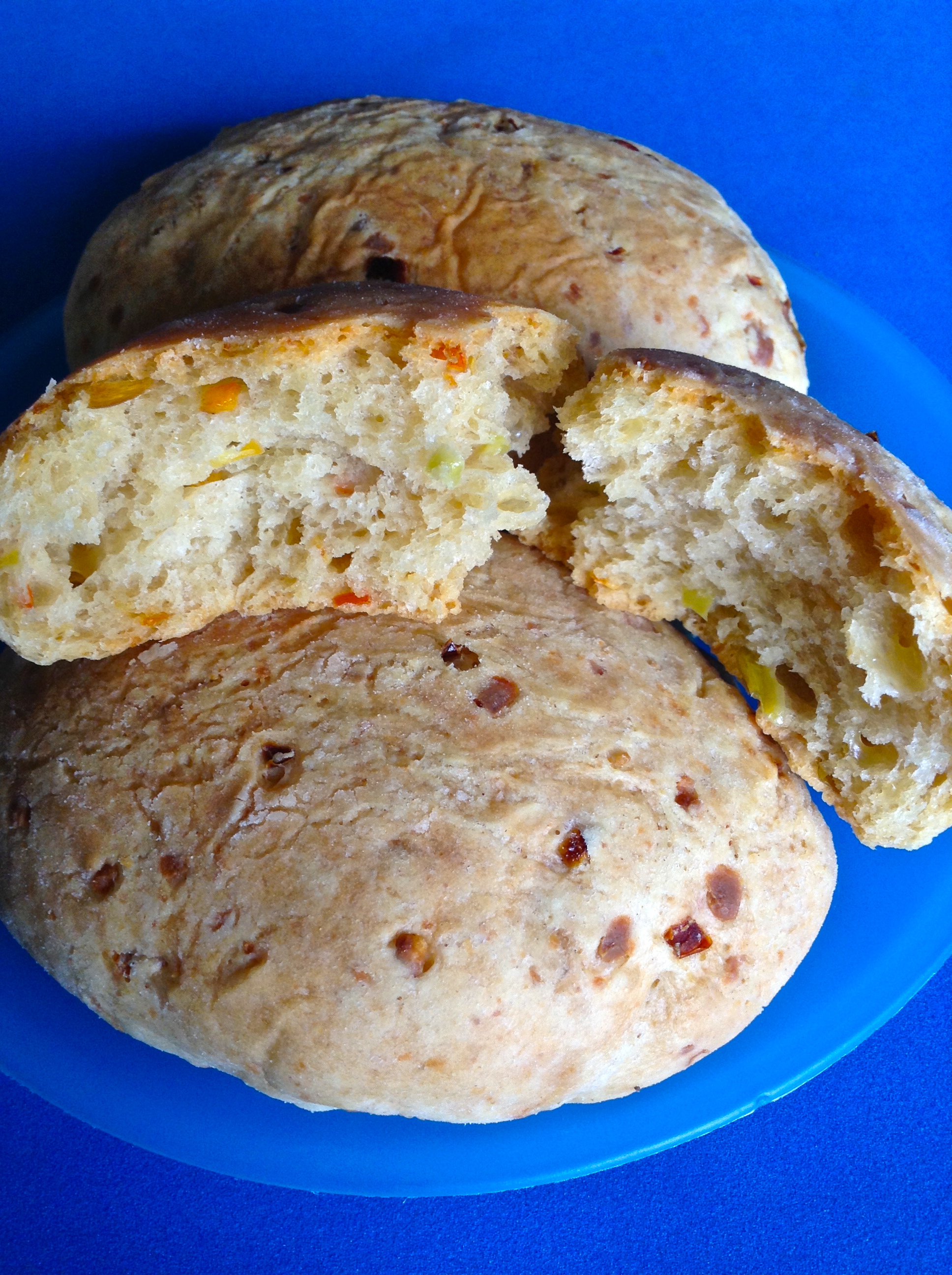 Pasado ese tiempo, los meto en el horno precalentado a 180º hasta que se doran. Si hago varios panes que no voy a servir en ese momento, los saco a mitad de cocción, los dejos templar y los reservo en la nevera. Cuando los vaya a consumir, los meto de nuevo en el horno hasta que terminan de dorarse.