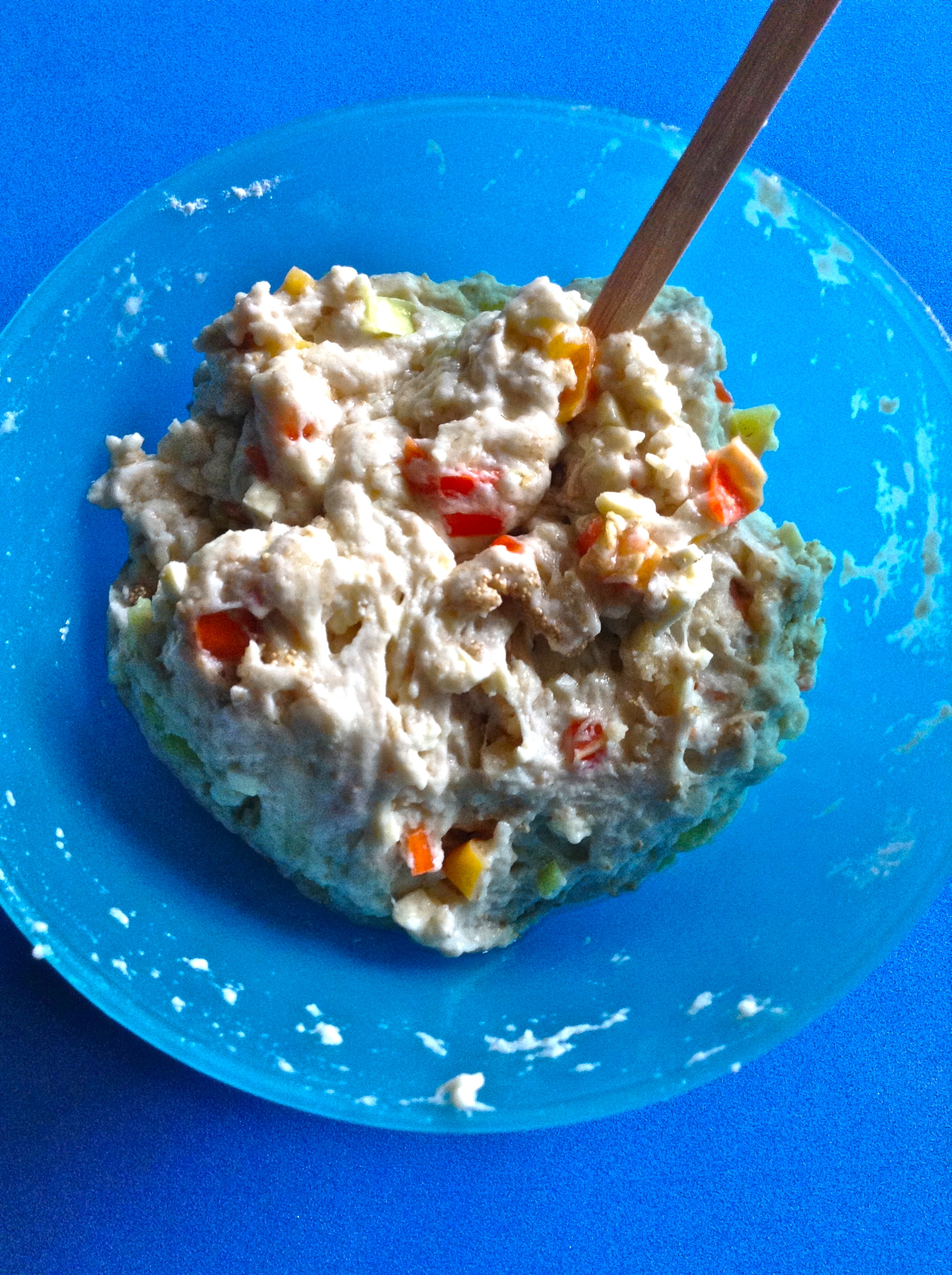 En un bol, mezclo todos los ingredientes y remuevo hasta que la masa se separa del bol.