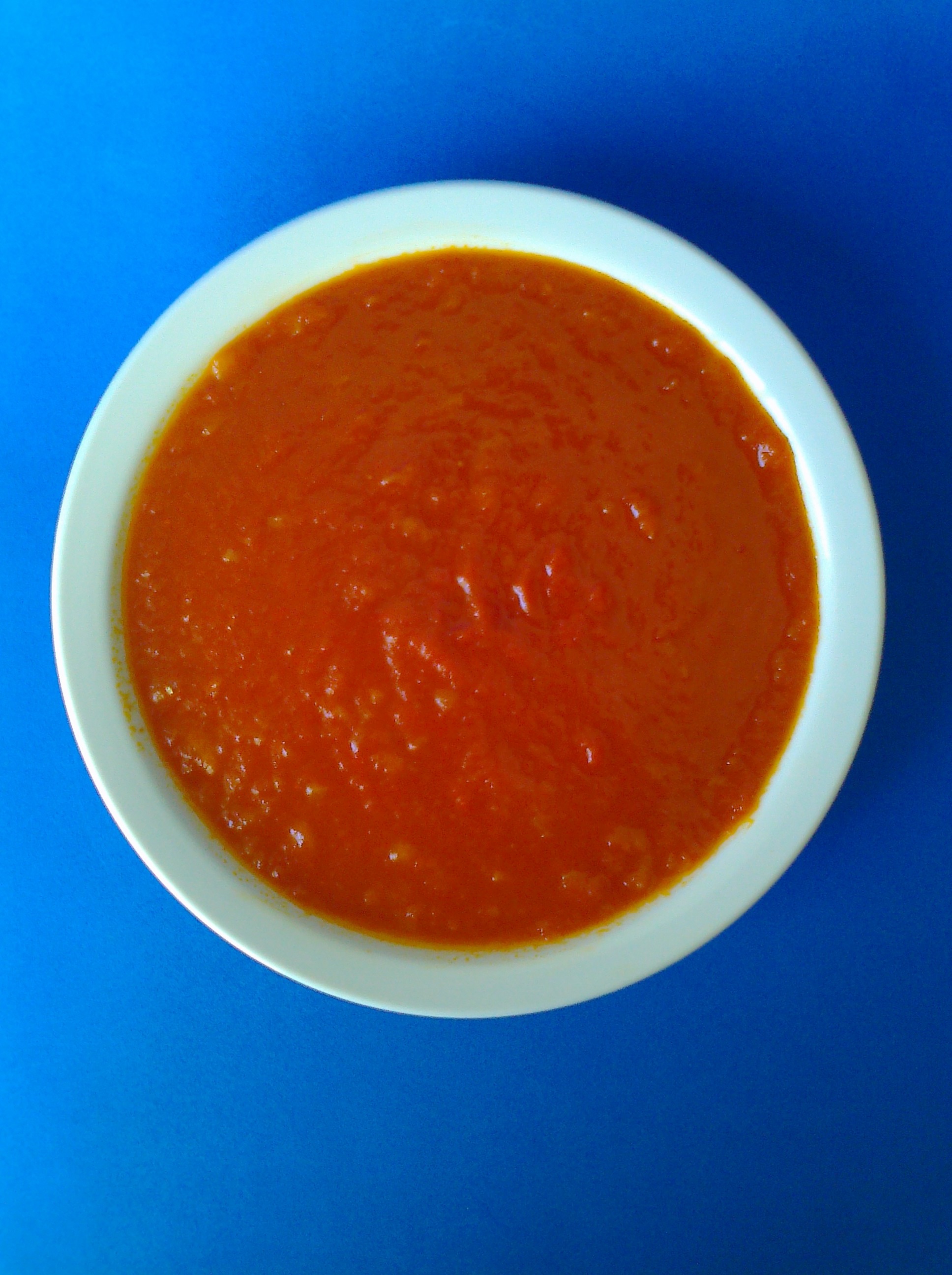 Entonces, unto de tomate la cara superior de esta rebanada.