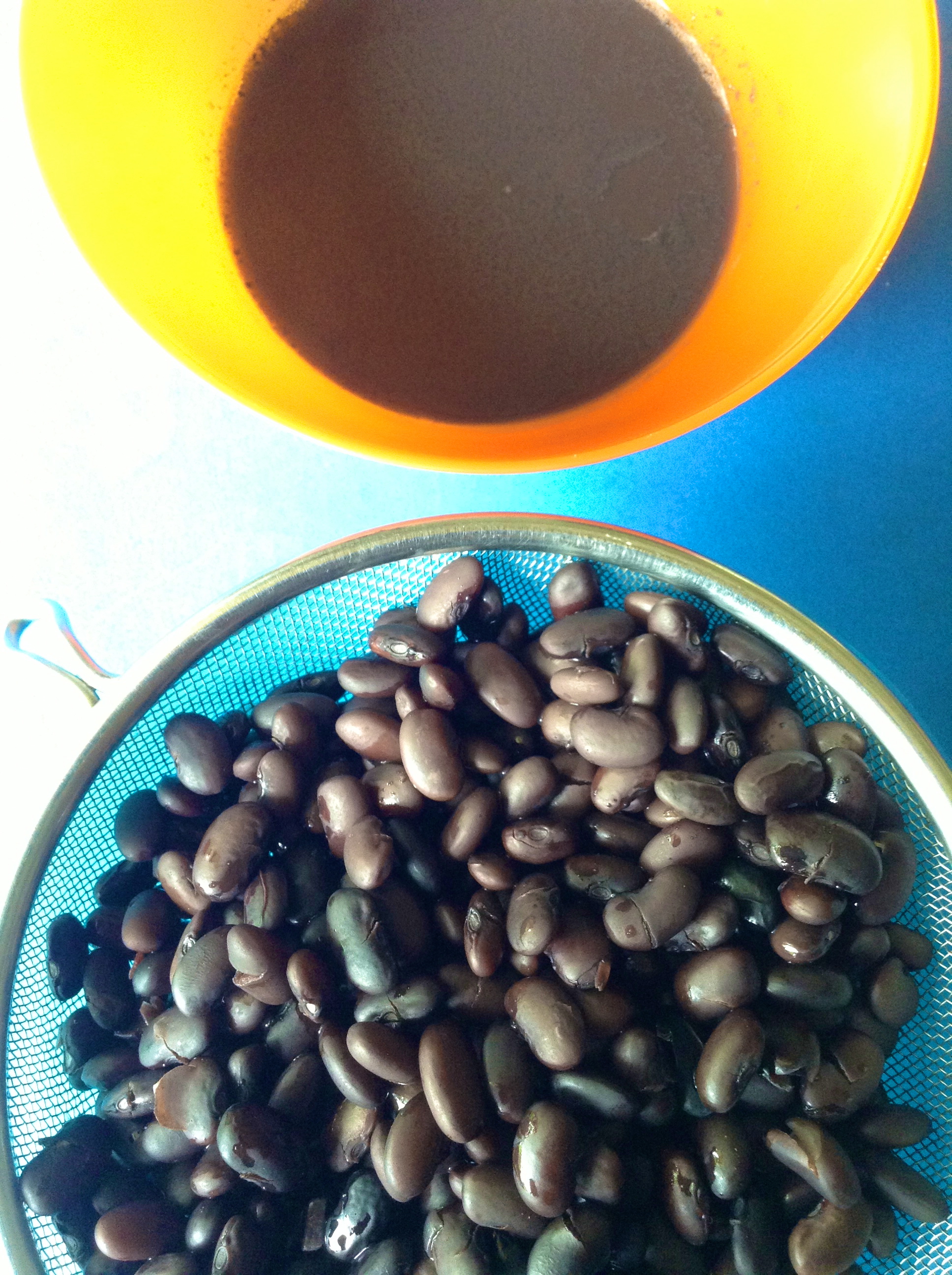 Pasado este tiempo, coloco los frijoles con el agua en una cazuela profunda a fuego medio-alto. Cuando los frijoles están blandos (una hora más o menos), añado la sal, le doy unas vueltas, los retiro del fuego y los cuelo.