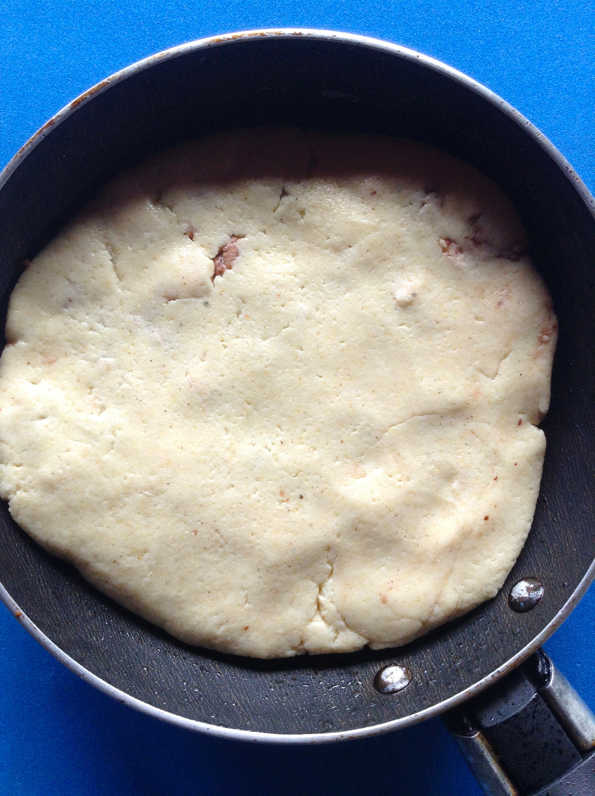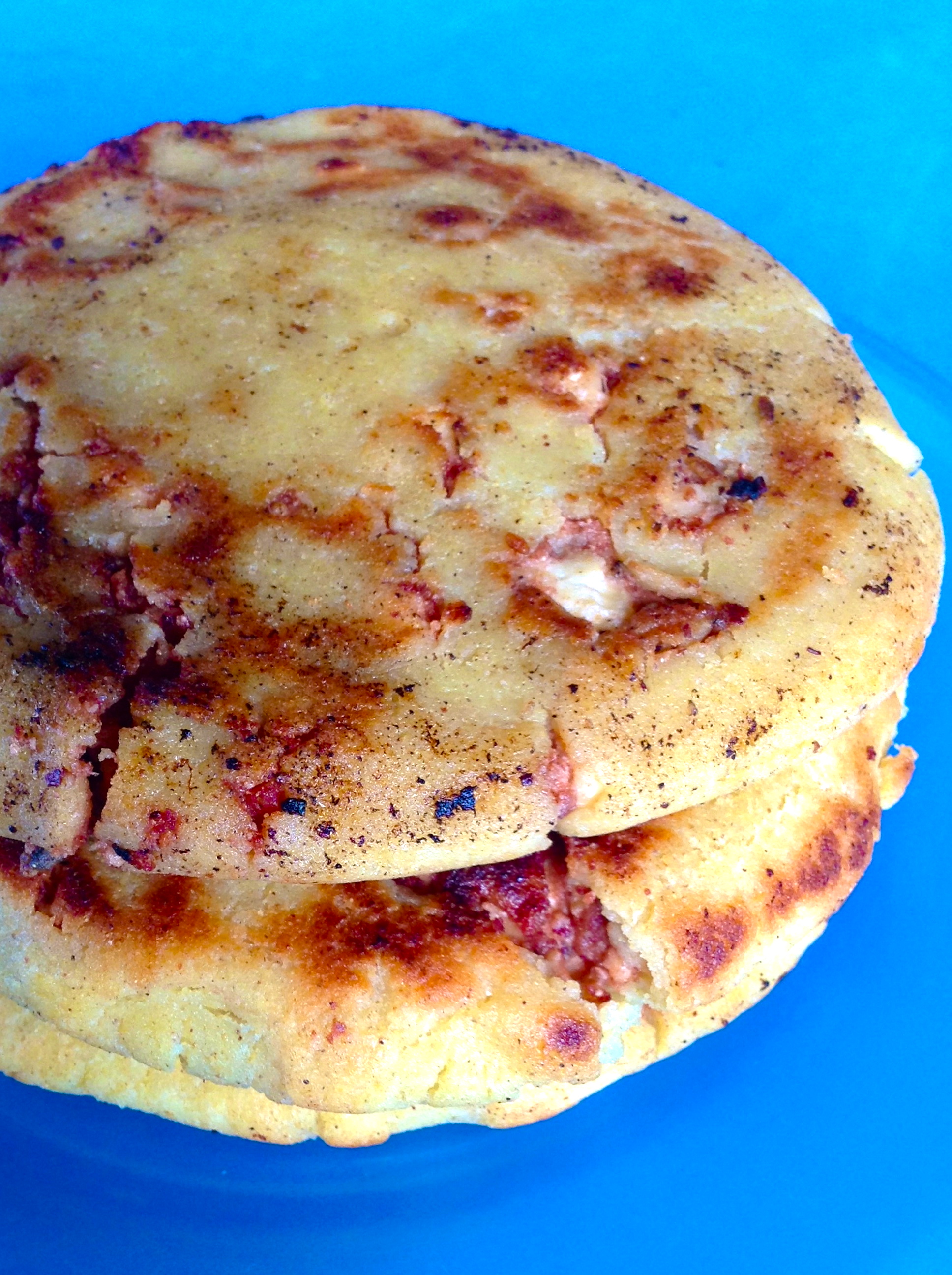 Pongo al fuego la sartén donde he frito el tocino para aprovechar la grasa. Cuando está muy caliente, echo las pupusas y las tuesto durante 1 ó 2 minutos por cada lado.