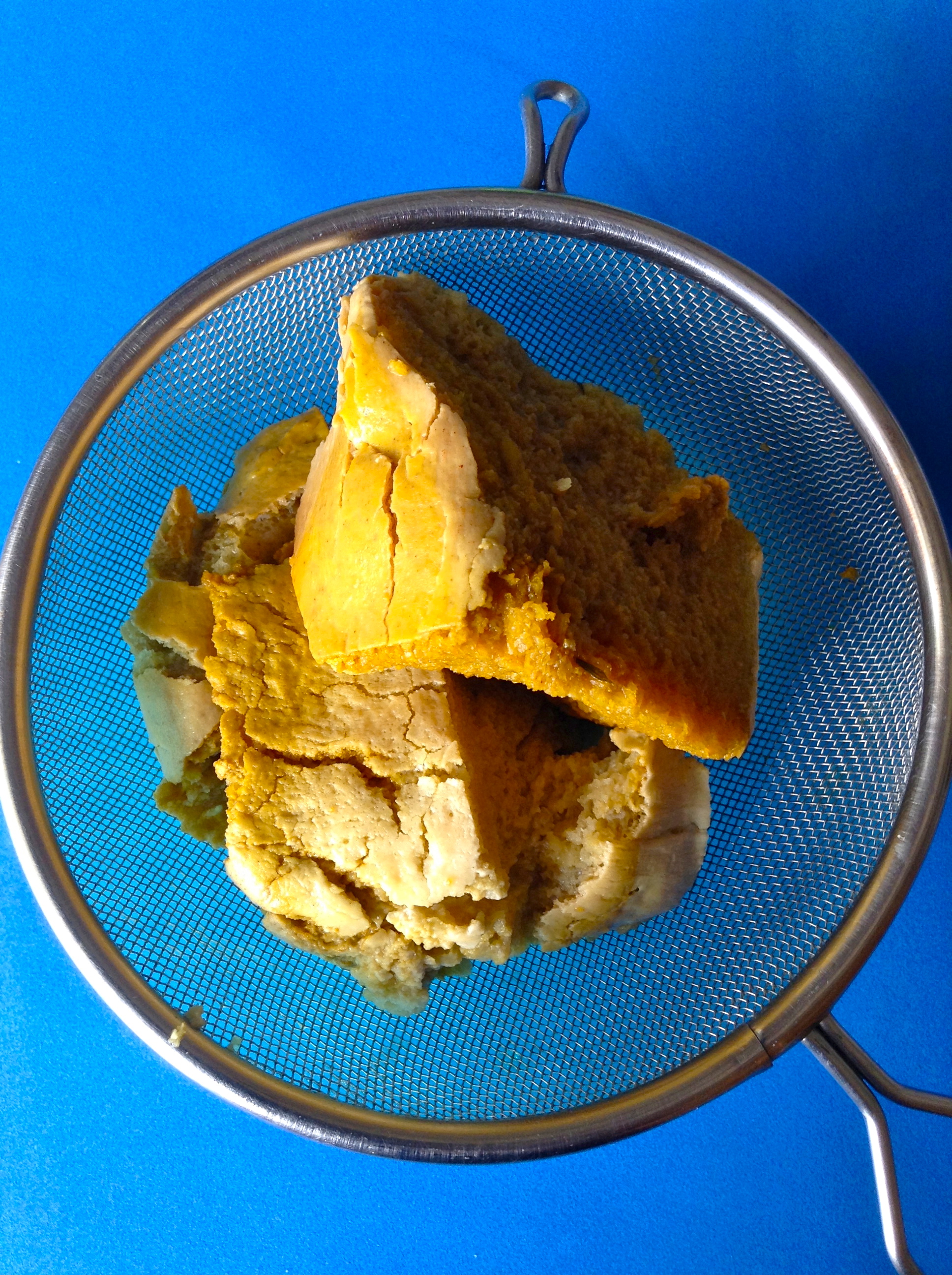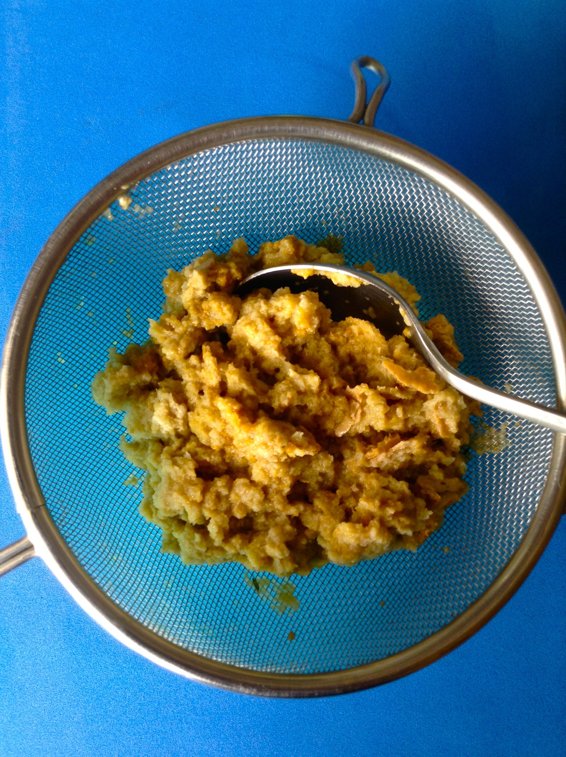 Entonces, pongo el pan a remojo en esta agua. Cuando se ha ablandado, lo cuelo extrayendo todo el agua posible.