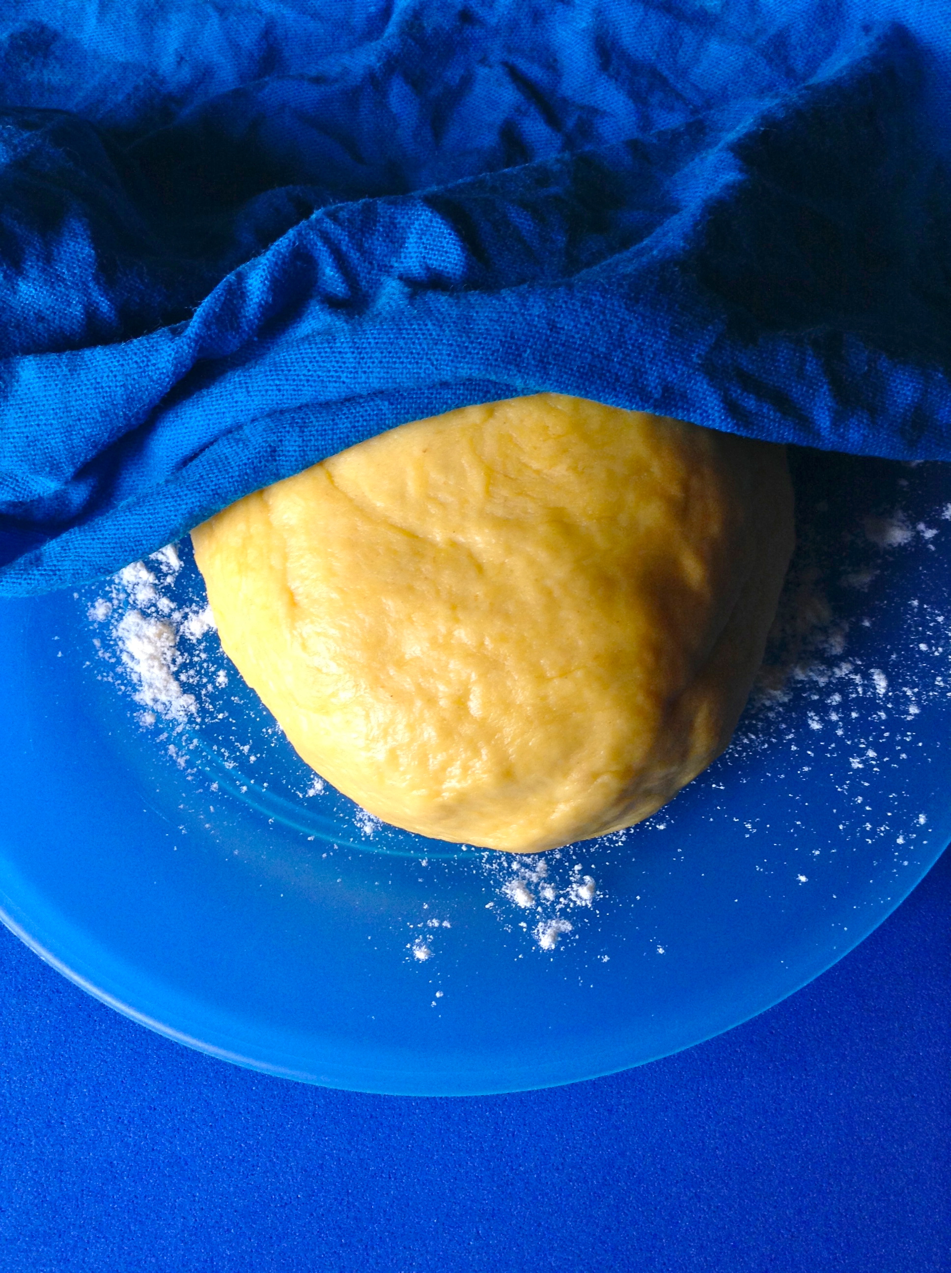 Amaso durante unos 10 minutos. Si es necesario, añado un poco más de harina. Lo cubro con un paño húmedo y lo dejo reposar una hora en la nevera.