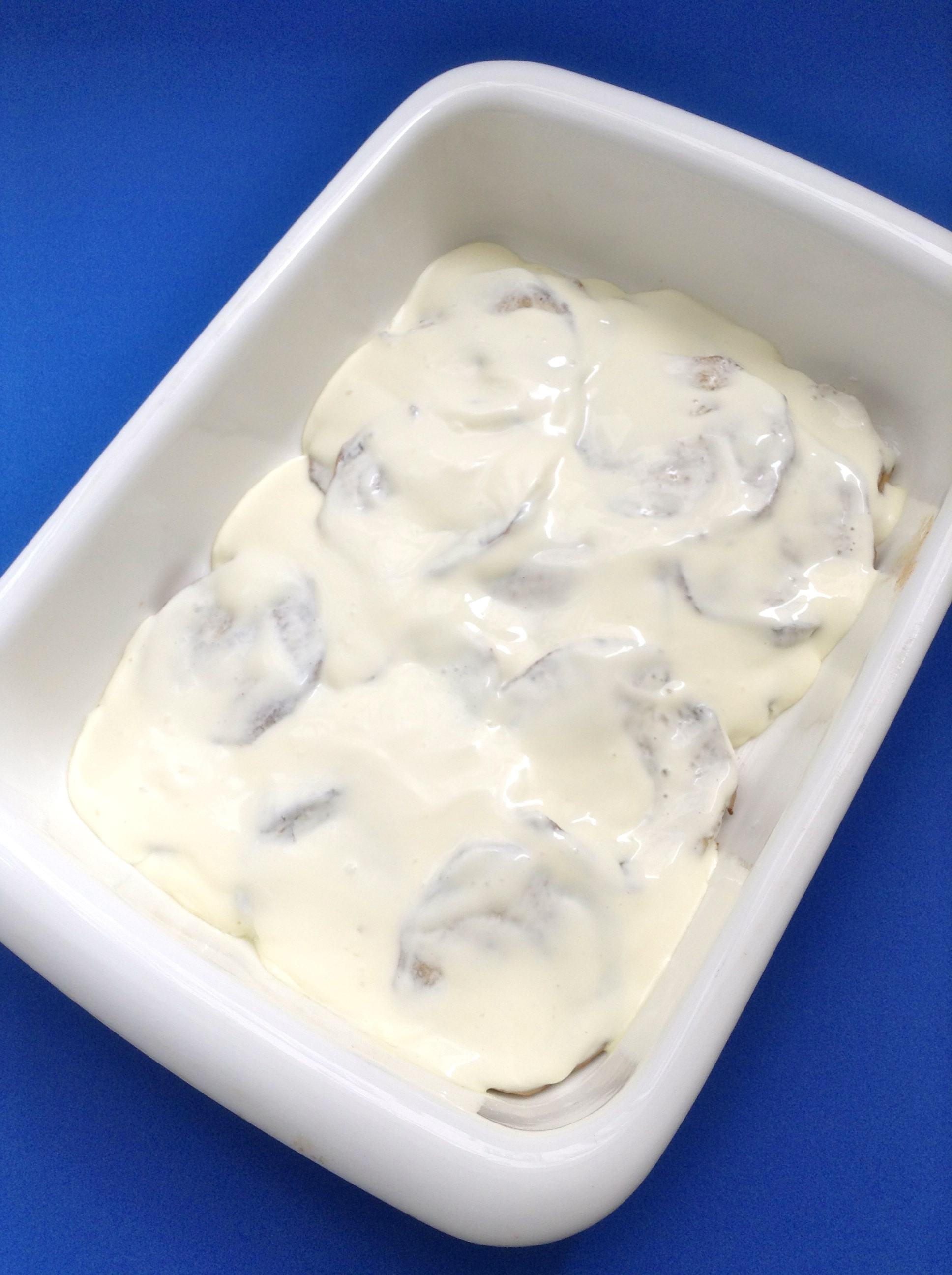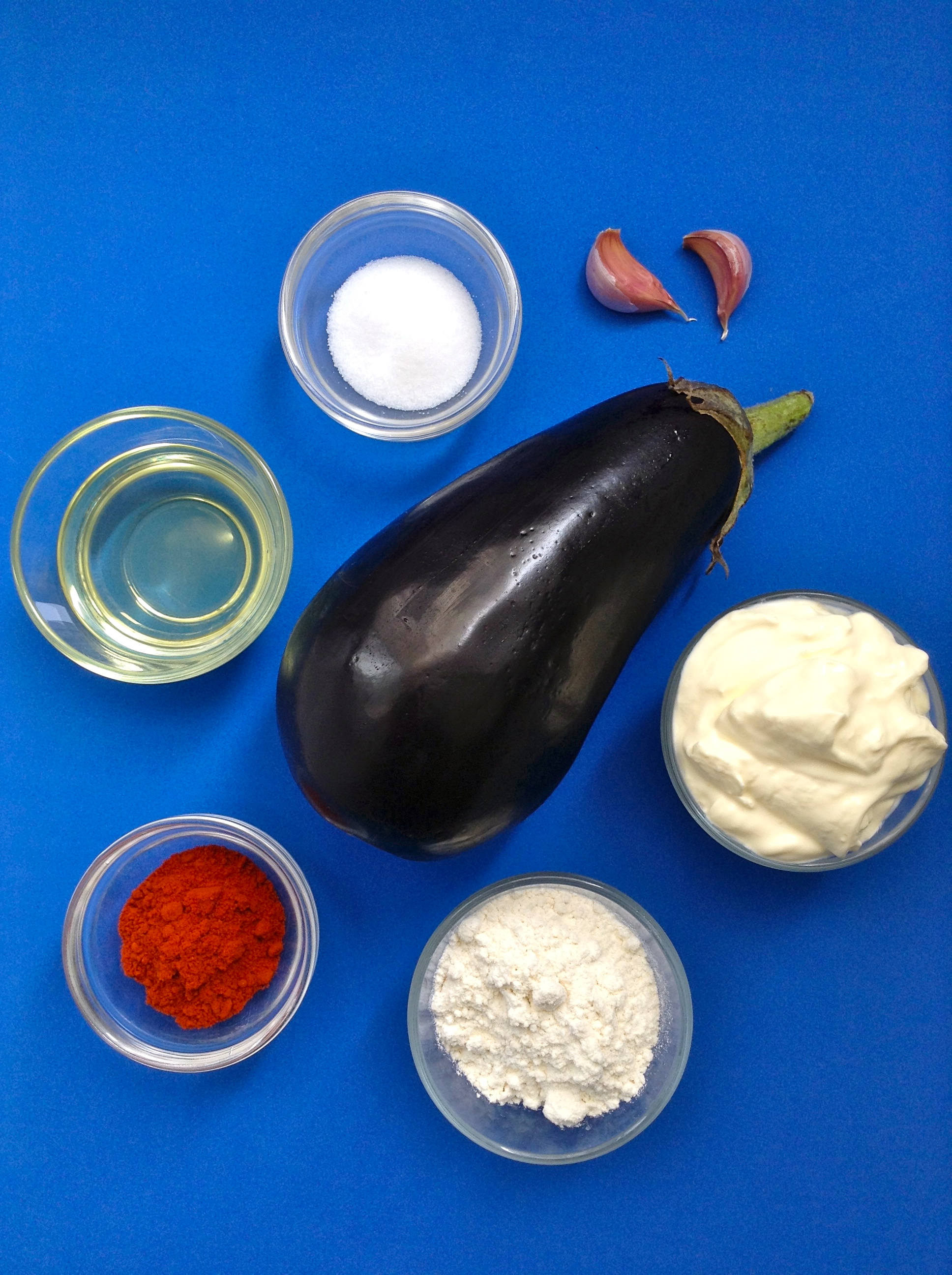 Pasados los 45 minutos, saco las berenjenas del horno y las cubro con la nata agria. Decoro el plato con unos hilos de aceite de pimentón y, si gusta, con un poco de ajo rehogado.