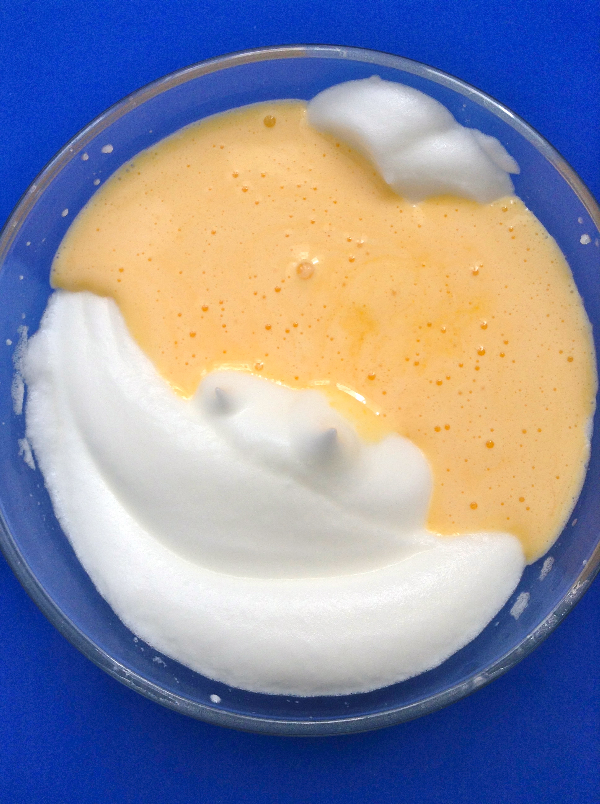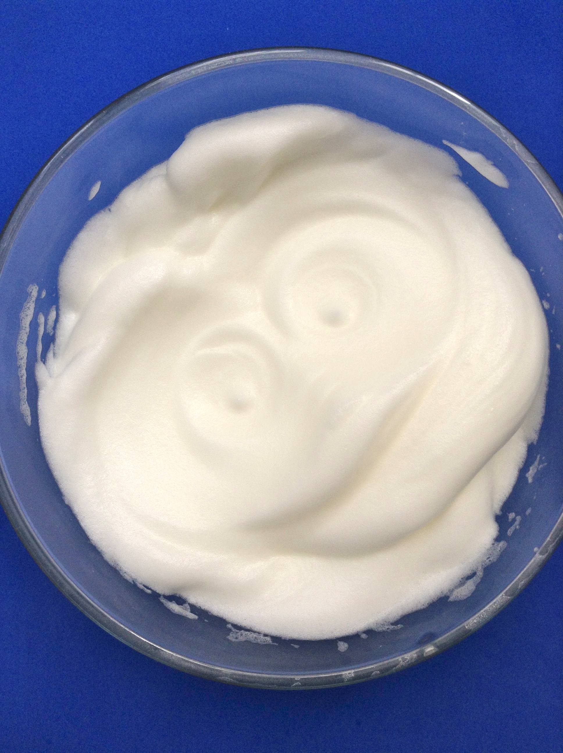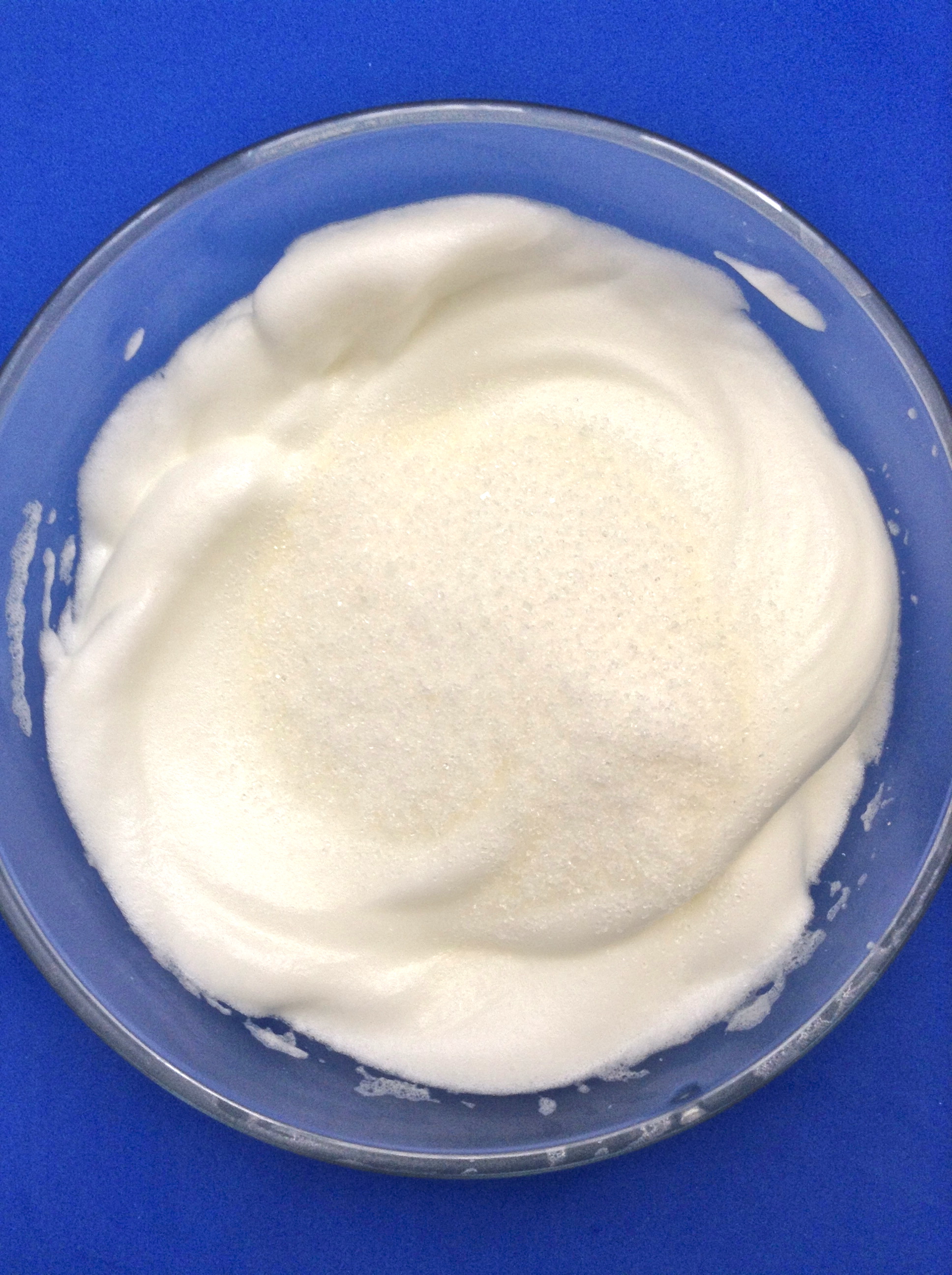 Añado el resto del azúcar a las claras y sigo batiendo.