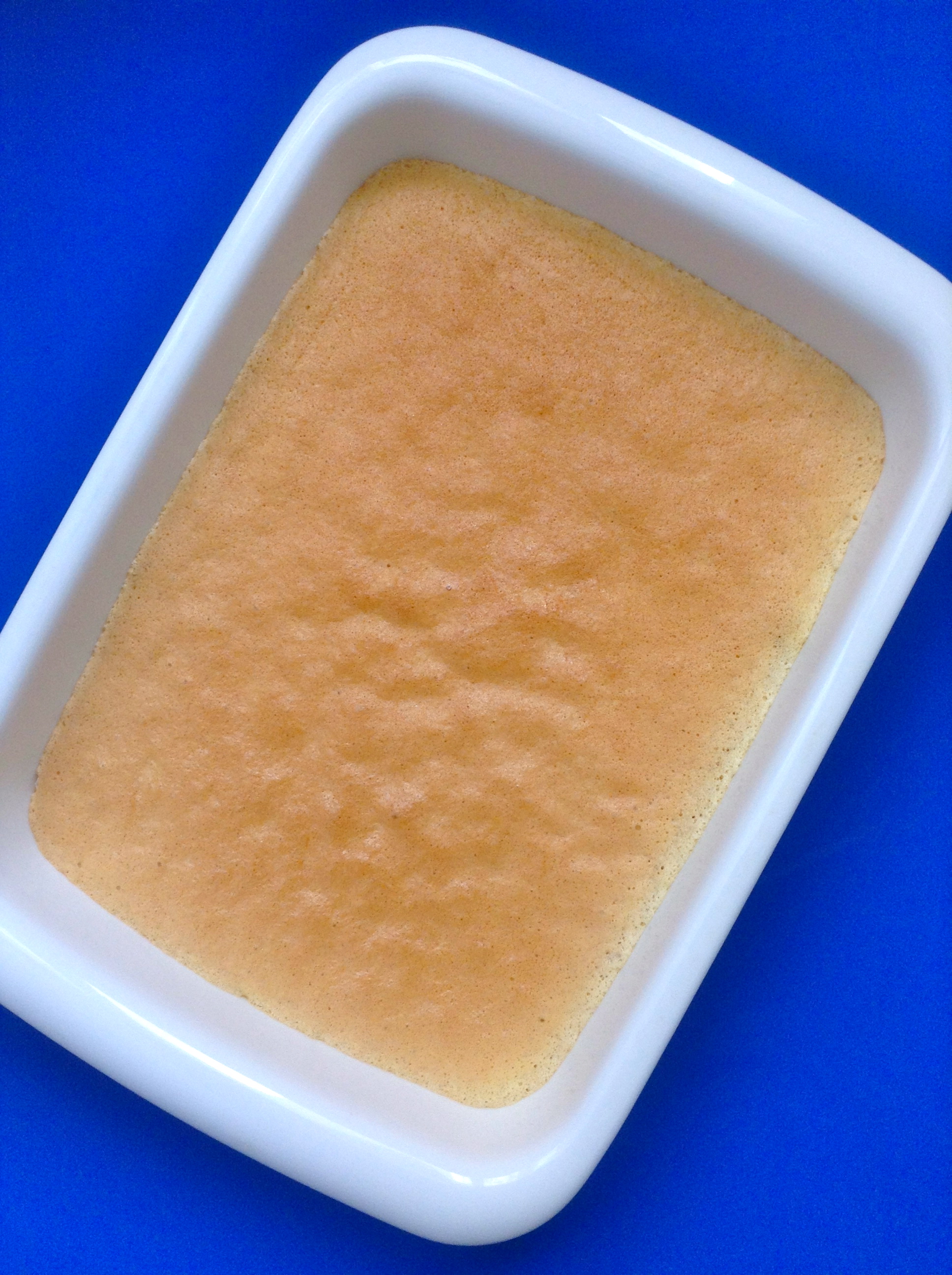 Pasado este tiempo, saco la fuente del horno y dejo enfriar el bizcocho.