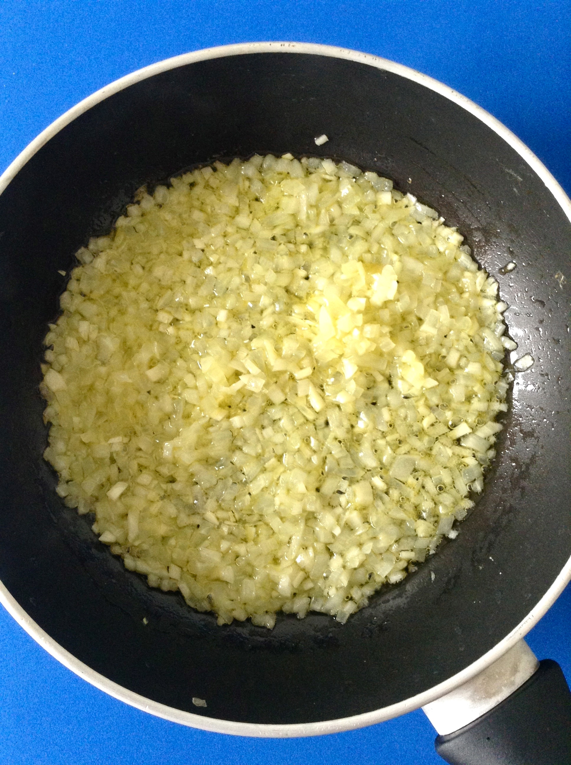 Pasado este tiempo pico la cebolla y los ajos, y los rehogo en una sartén con aceite de oliva. Cuando las verduras están pochadas, añado el pimentón. Le doy una vuelta rápida para que no se queme el pimentón y lo echo en la cazuela con los judiones (en este momento añado también la morcilla si está muy fresca).