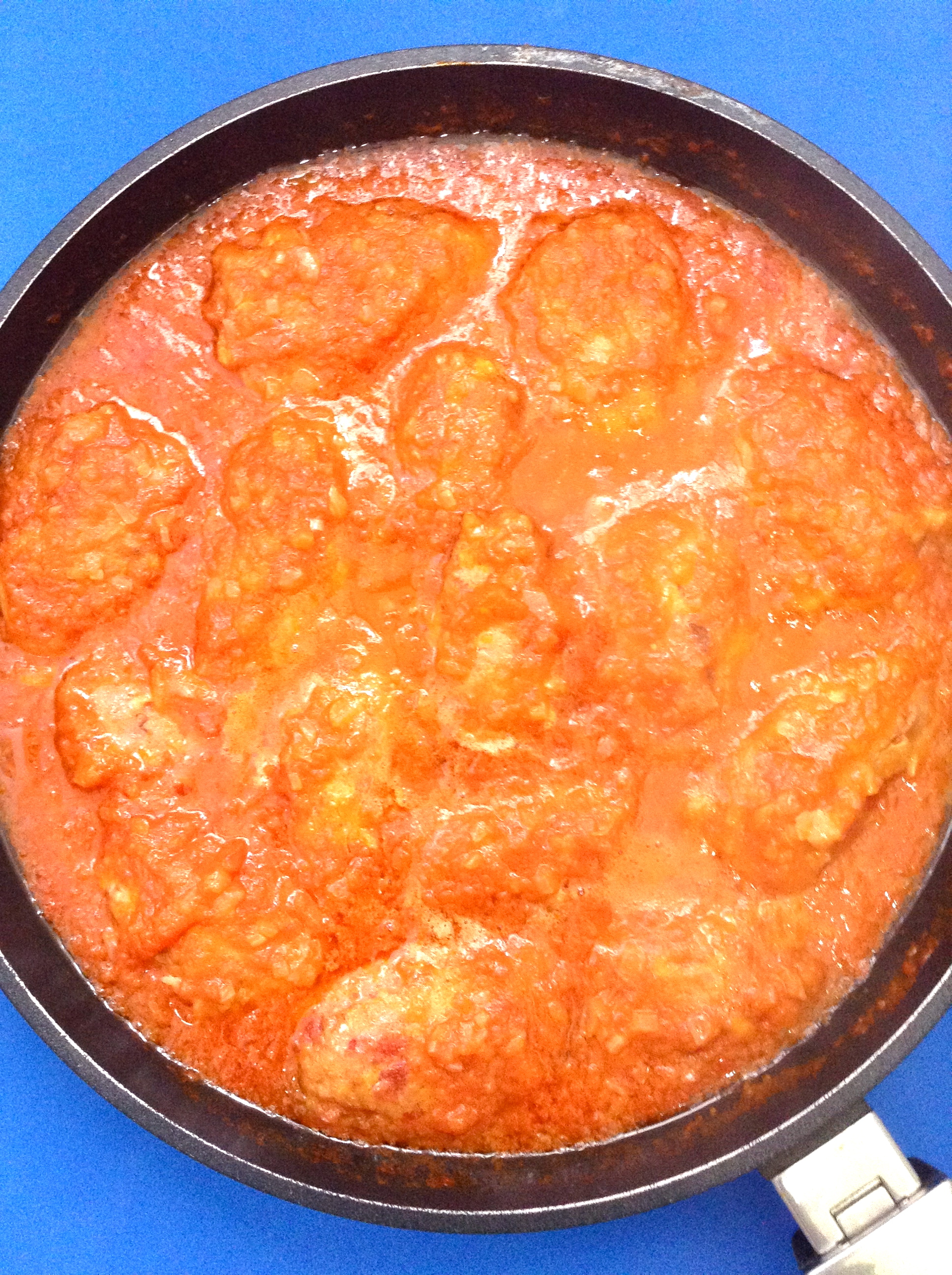 Preparo la salsa de tomate y la dejo a fuego bajo.