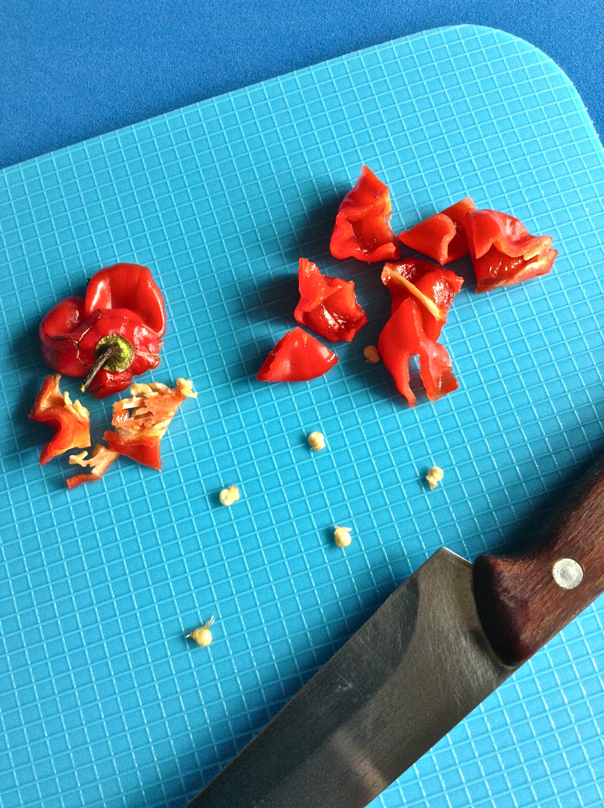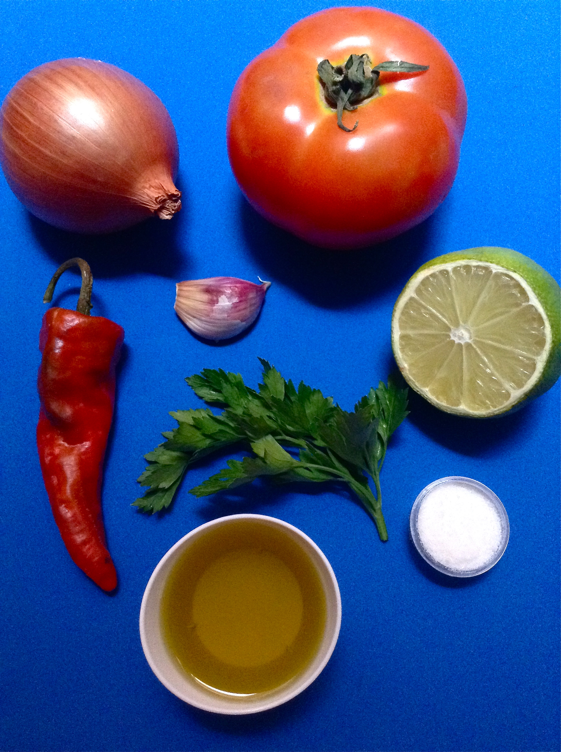 Pico la cebolla, el tomate, el ajo, el cilantro y el chile.