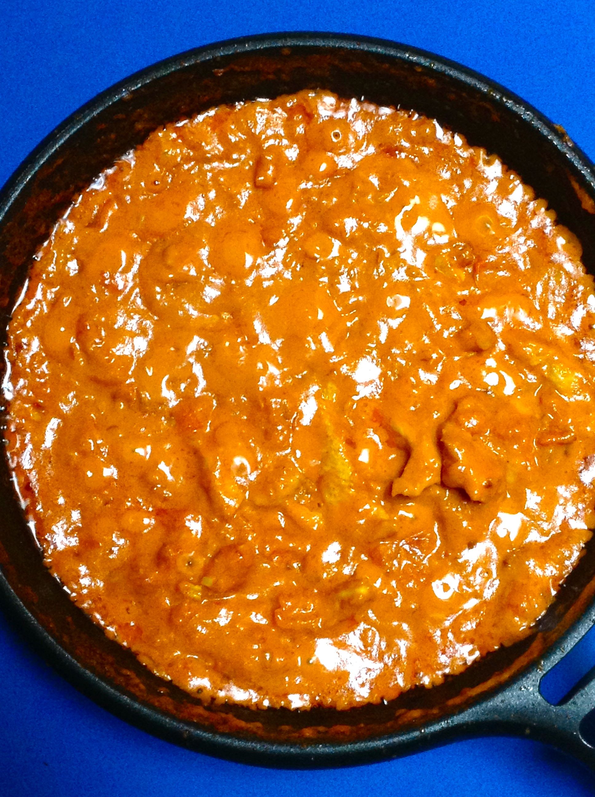 Pelo los tomates, los pico y los añado al pollo, junto a la salsa picante, la de tomate, el zumo de la lima, la leche de coco, el caldo y una pizca de sal. Lo mezclo bien y lo dejo cociendo hasta que reduzca la salsa (unos 10 minutos).