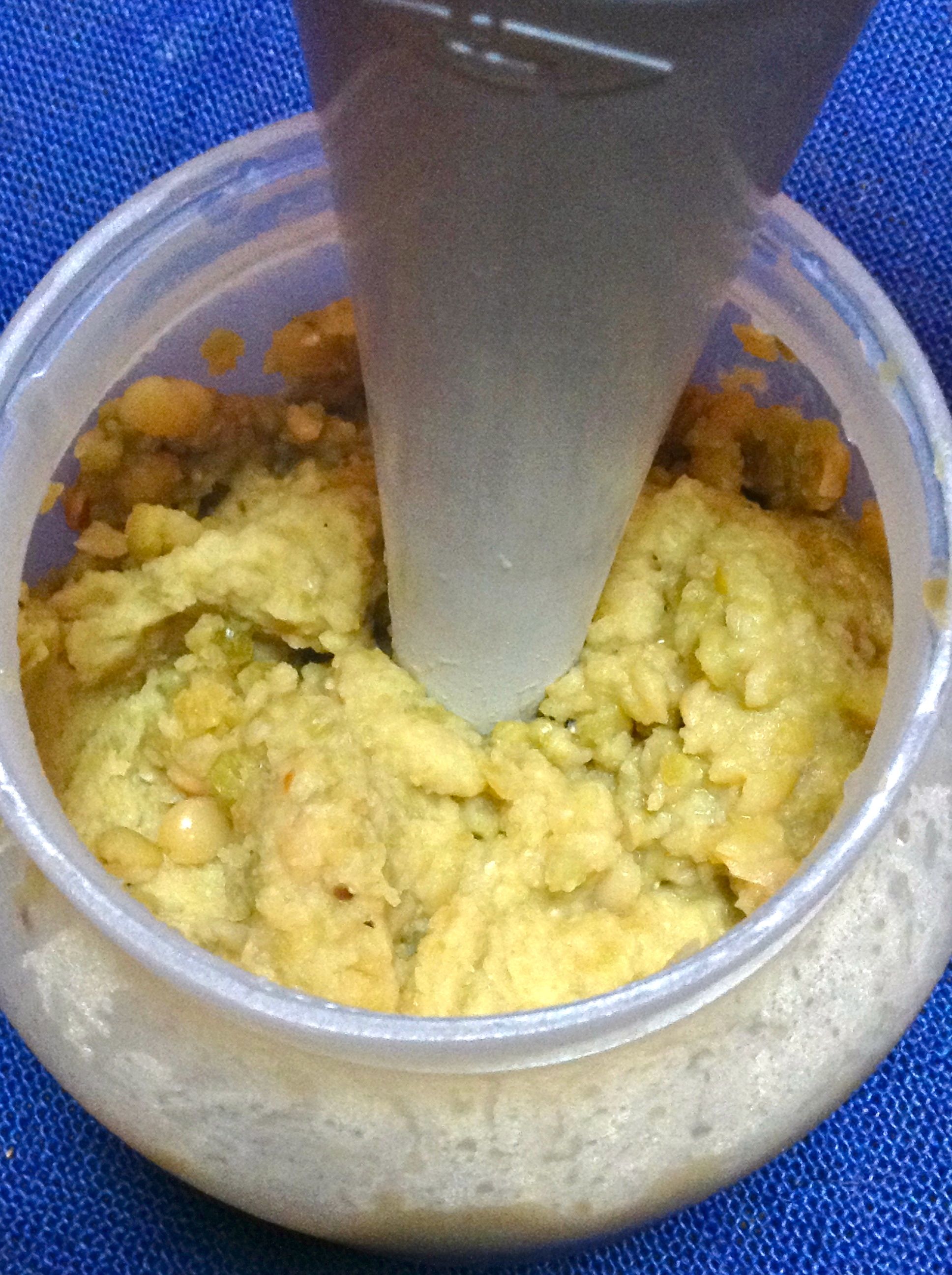 Pasado este tiempo, lo bato, lo pruebo y rectifico de sal y también de agua. La baisara debe quedar como una crema en la que se suele mojar pan.