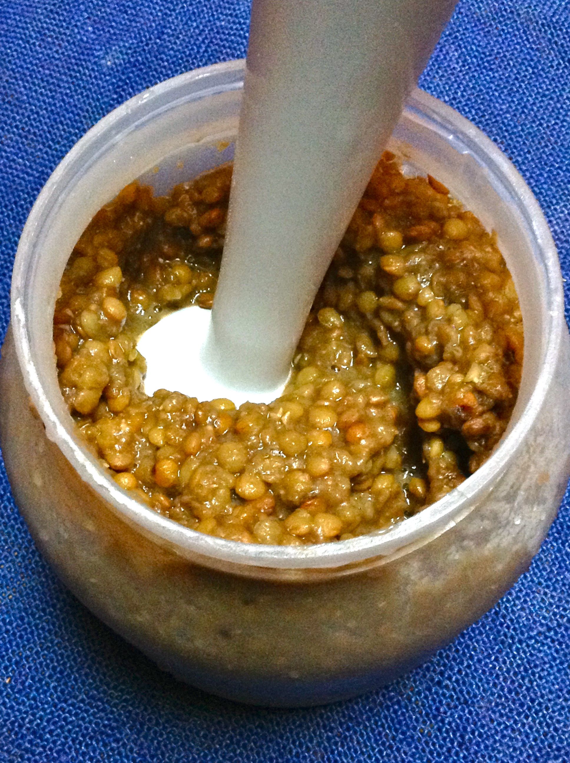 Lavo muy bien los lentejas, cambiando el agua hasta 4 veces.