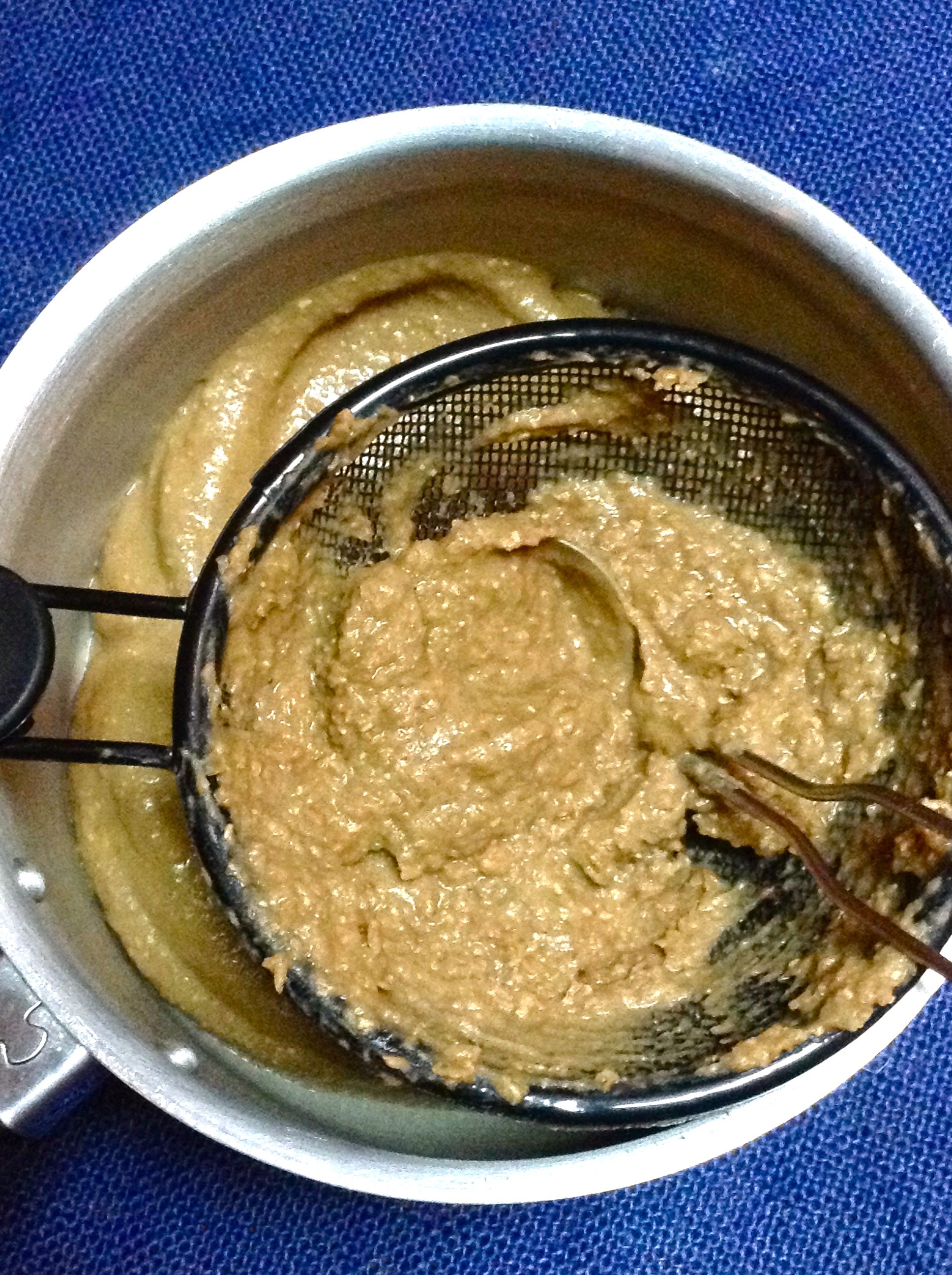 Pasado este tiempo, lo bato, lo pruebo y rectifico de sal y también de agua. La baisara debe quedar como una crema en la que se suele mojar pan. La cuelo para que quede más fina.