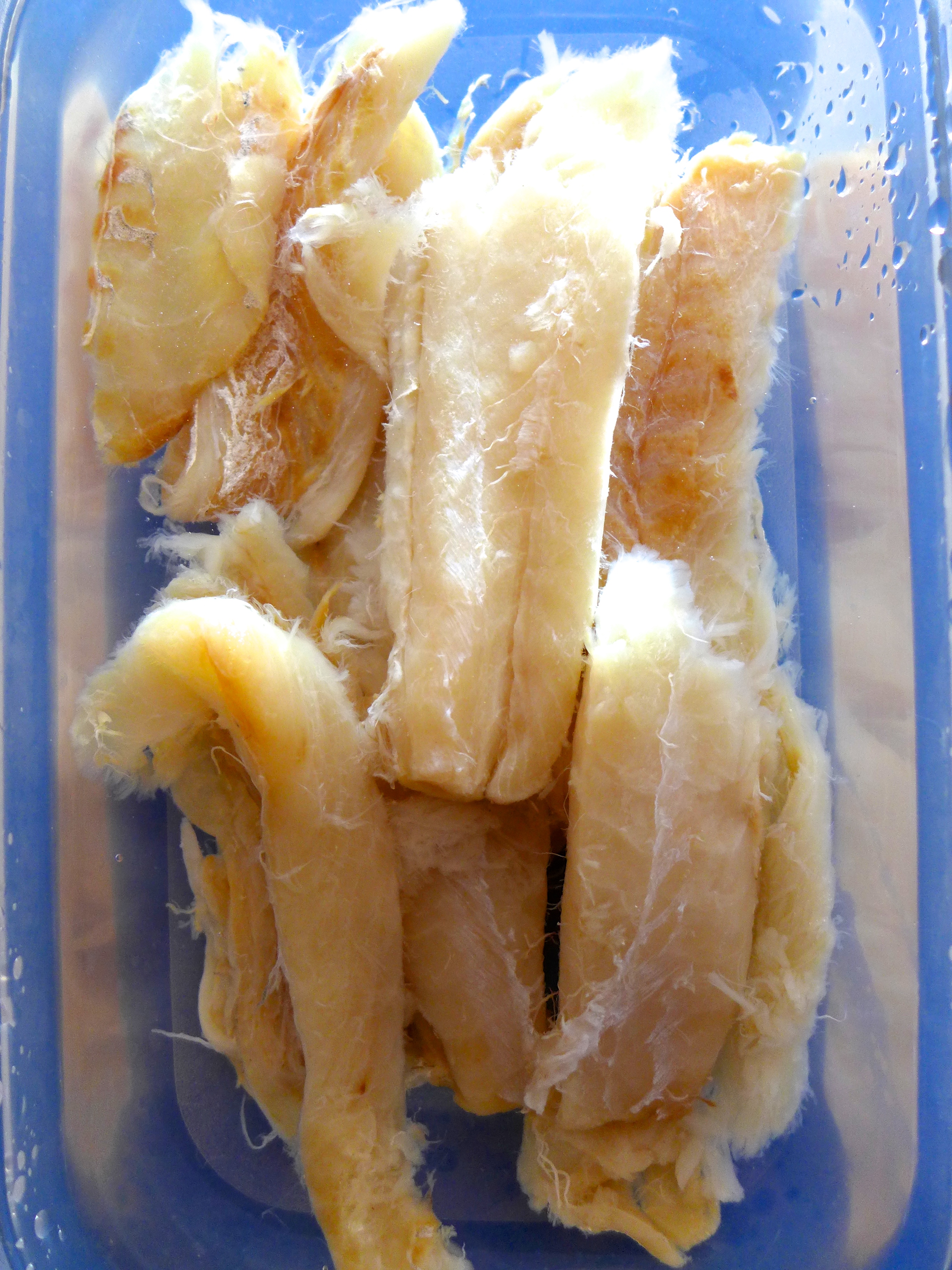 Desalo los lomos de bacalao cambiando el agua 3 veces al día durante 3 días (si son migas de bacalao es suficiente con día y medio o dos días).