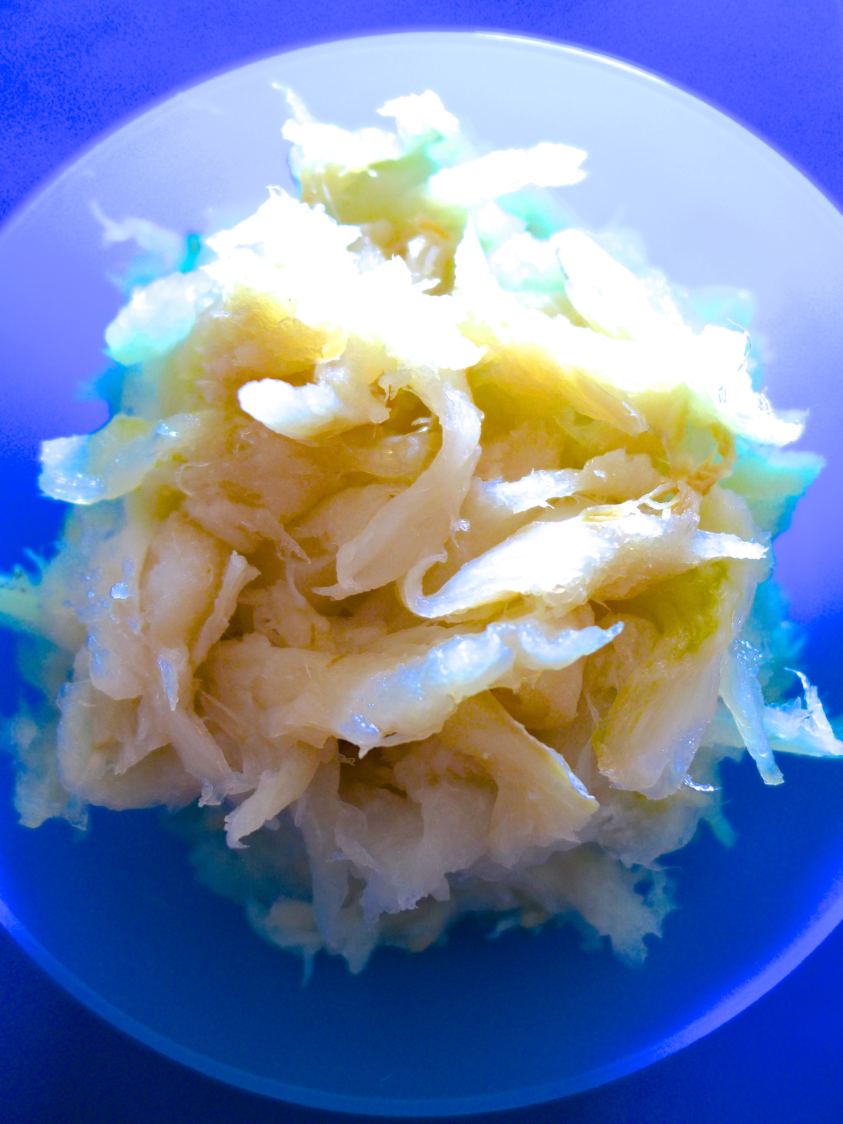 Pasado este tiempo, lo dejo escurrir una hora y lo desmigo. Reservo.