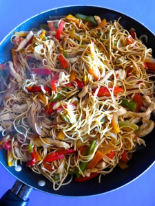 noodles con pollo y verduras