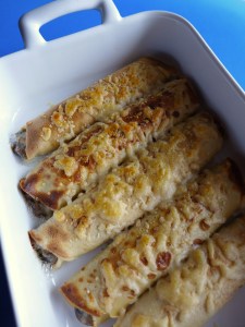 Extiendo los crepes en un plato, coloco la mezcla en el centro y lo enrollo.