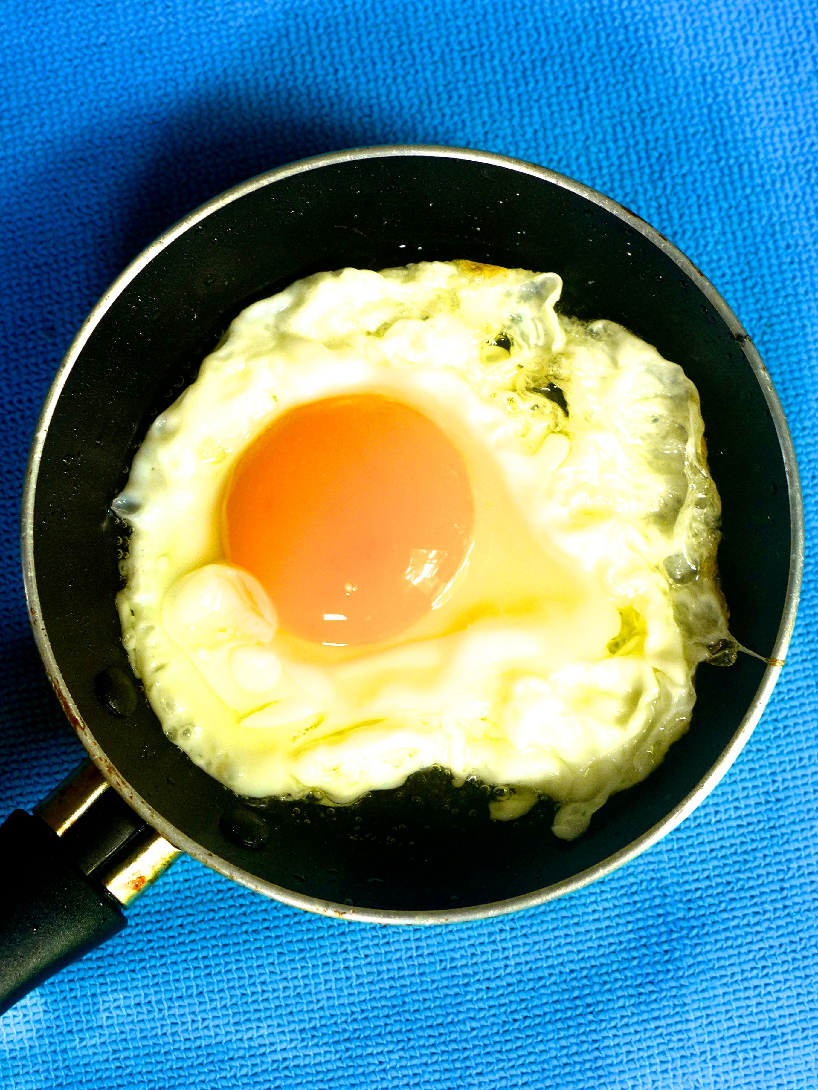 Luego, hago una tortilla y la lamino (o hago unos huevos fritos).