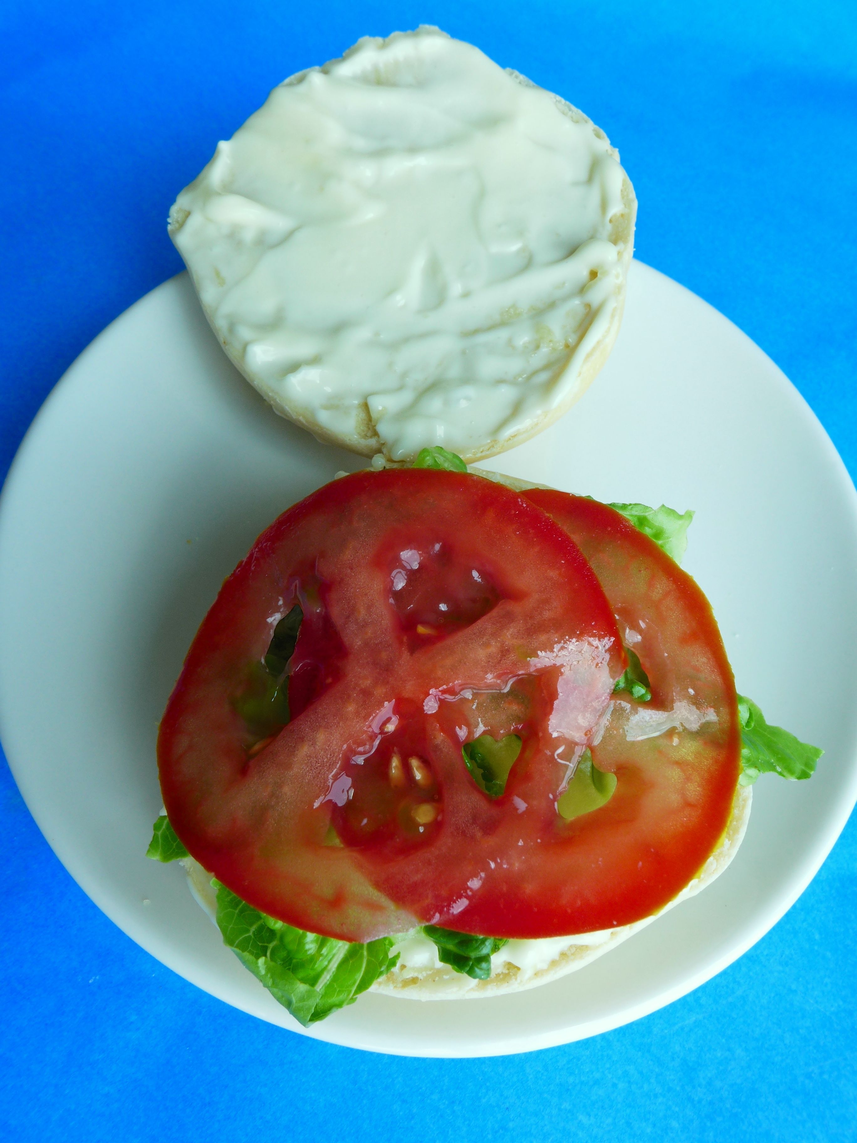 Unto lo panes con mahonesa y les coloco lechuga y tomate.