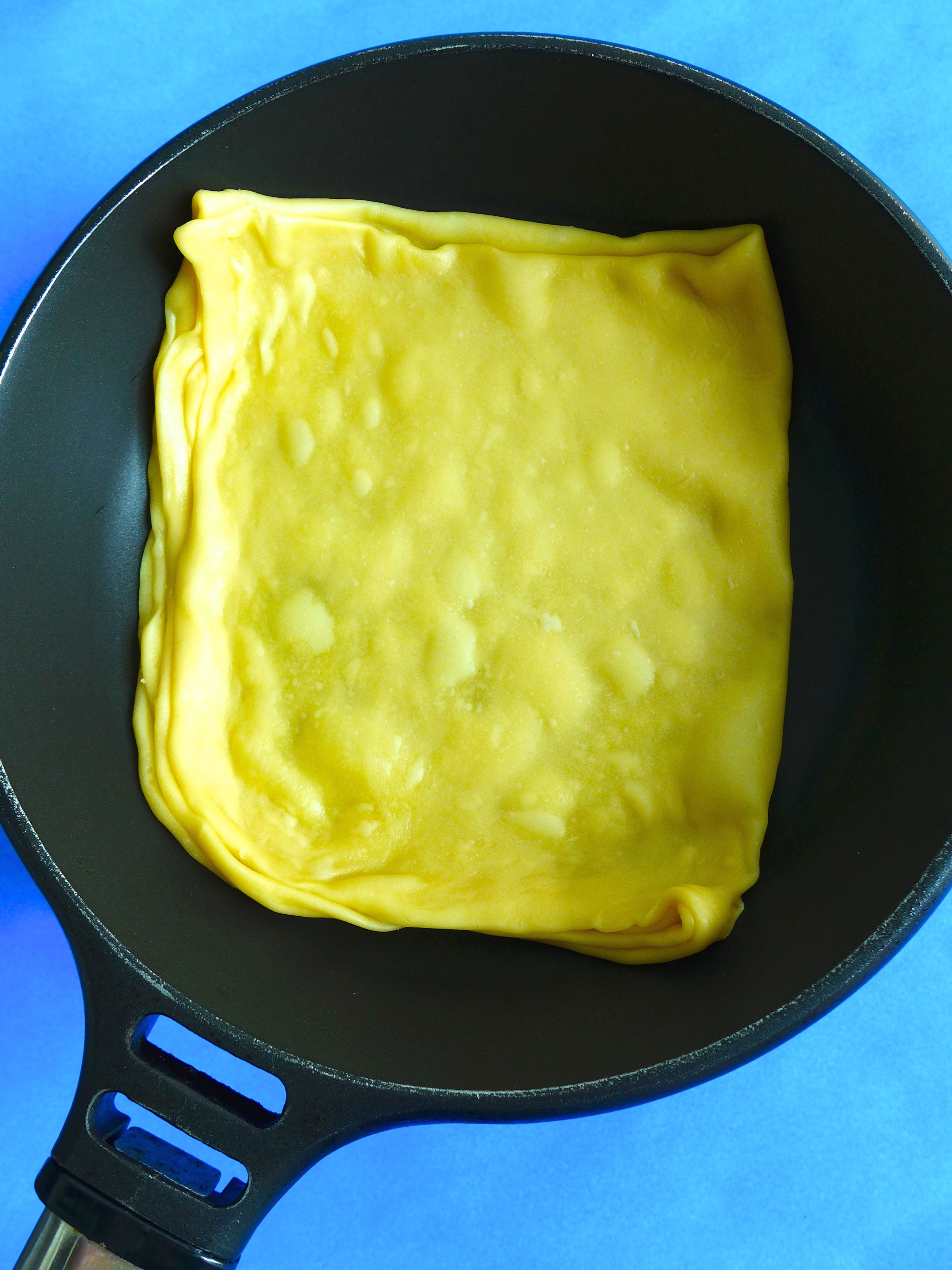 Engraso ligeramente una plancha y cocino el roti a fuego medio-bajo durante 5 minutos.