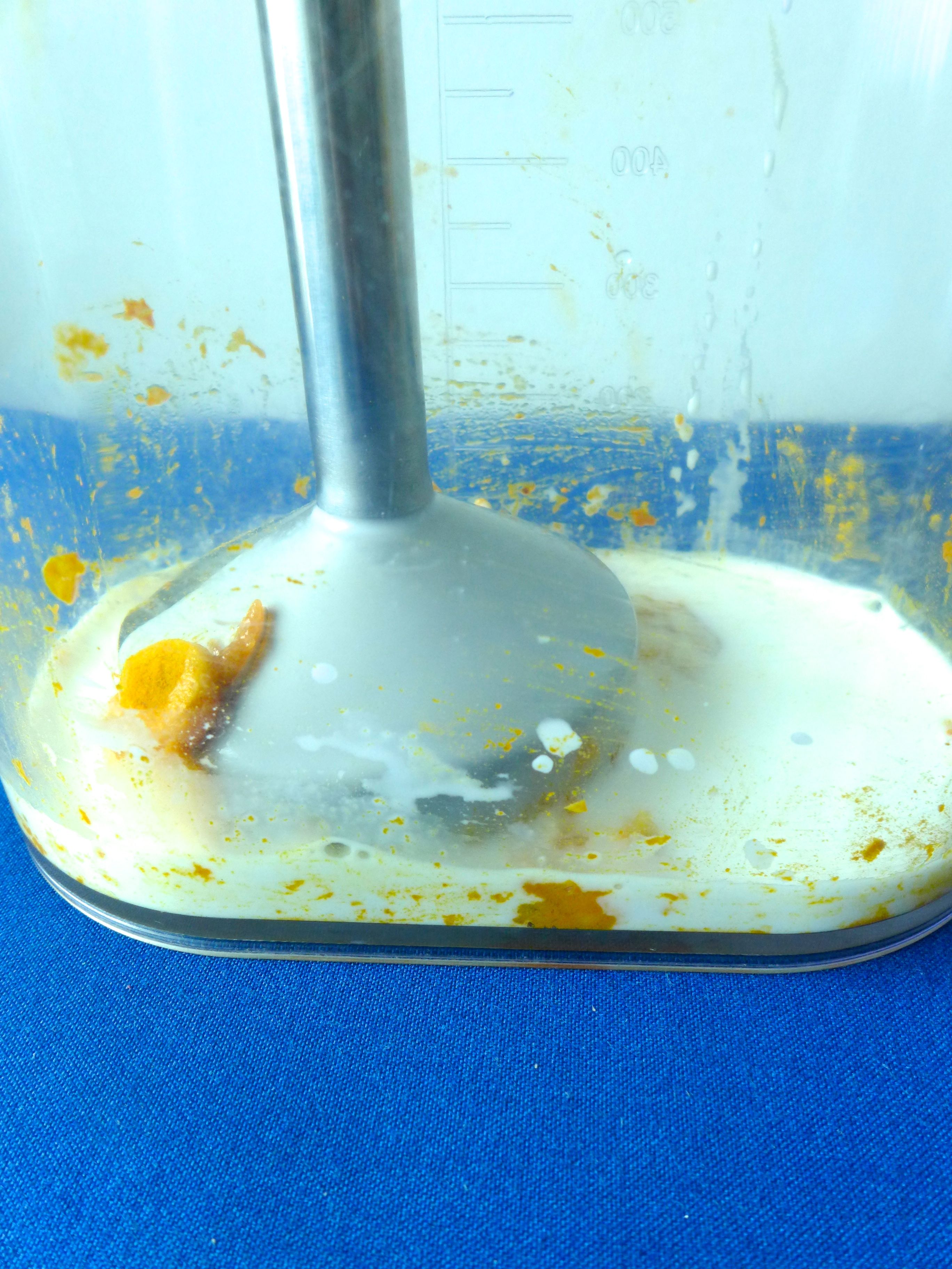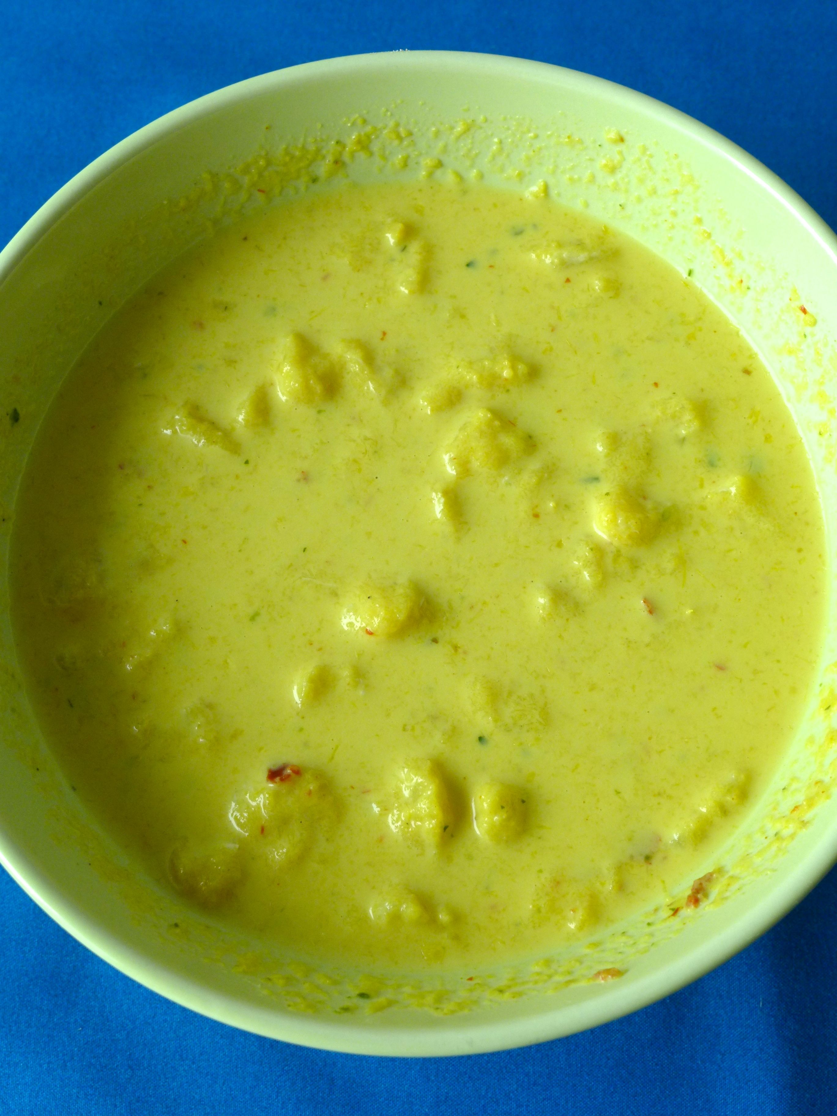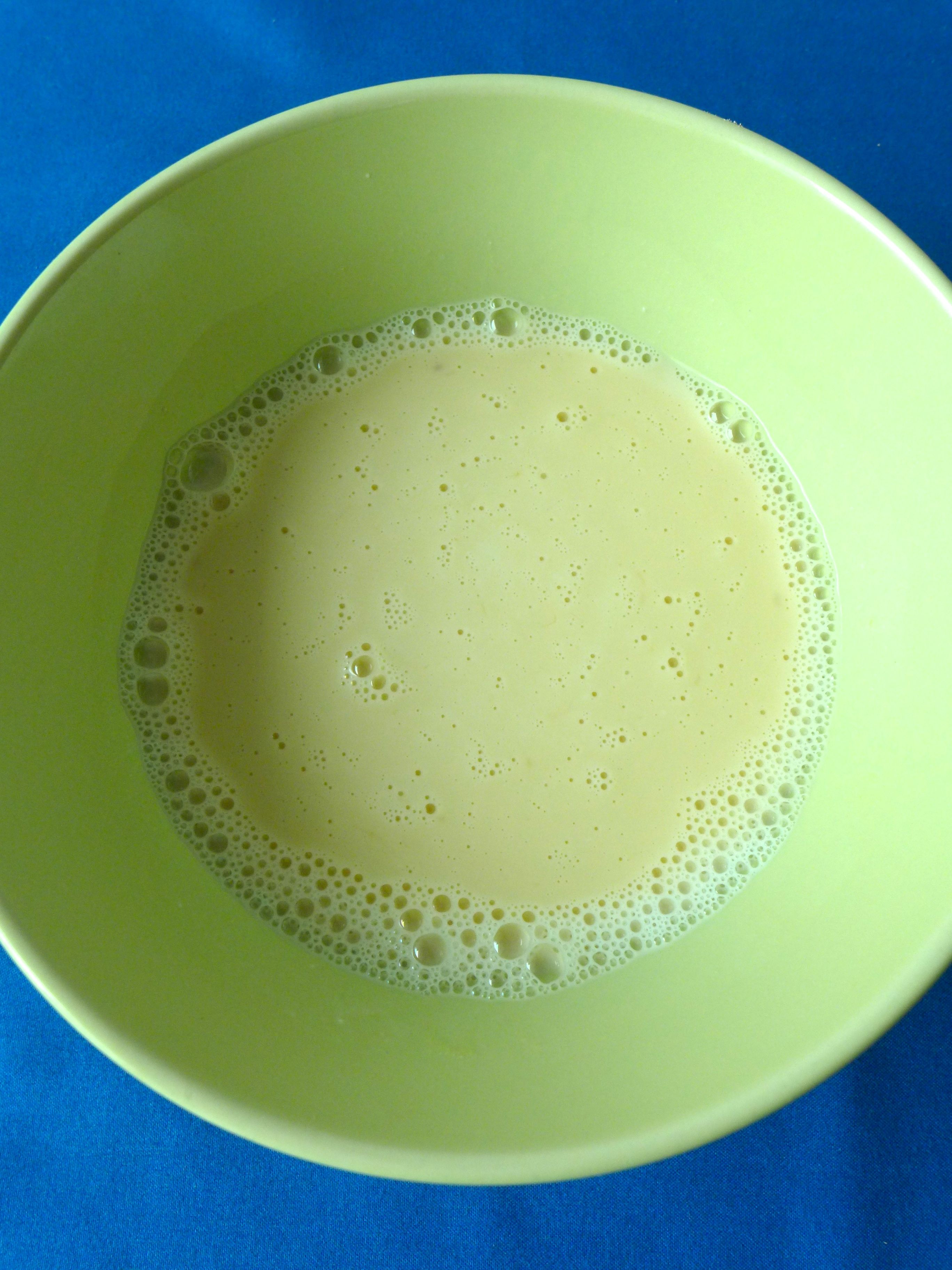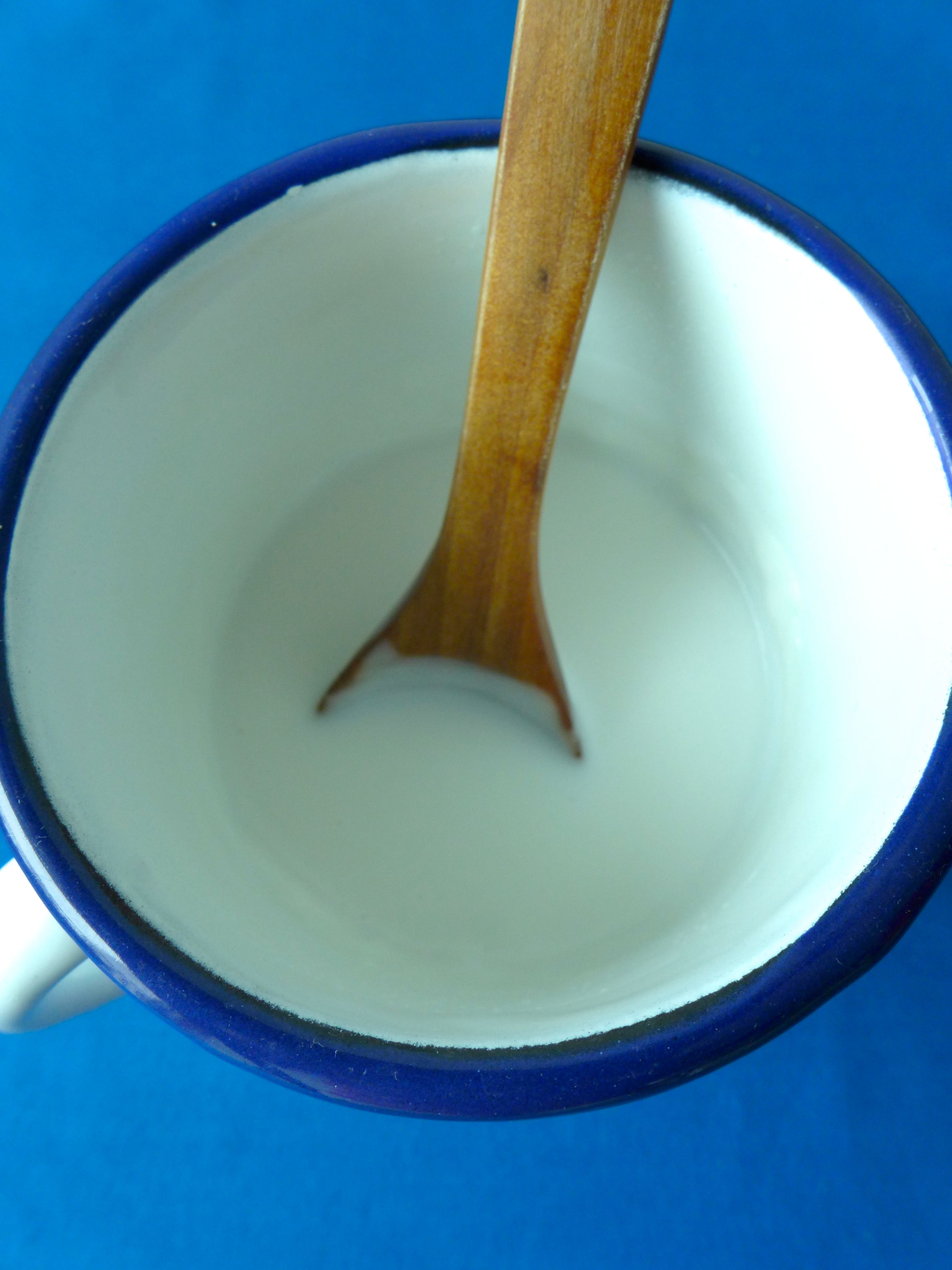Caliento la crema de coco y añado el almidón de maíz. Remuevo hasta que empieza a espesar (un par de minutos) y la retiro del fuego.