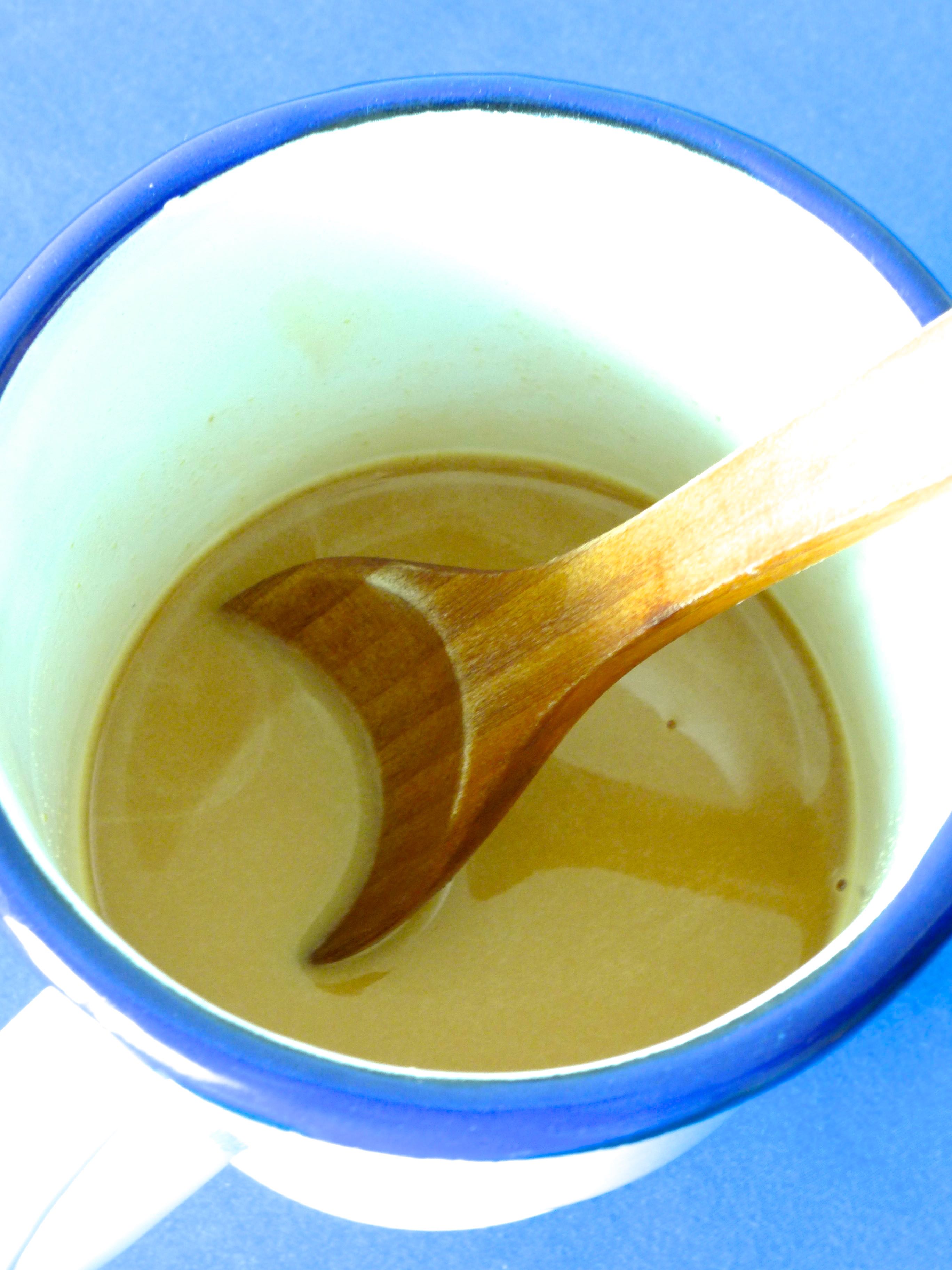 Caliento la leche de coco, el azúcar y la sal en una cazuela a fuego bajo (para que la leche no hierva) y remuevo frecuentemente.