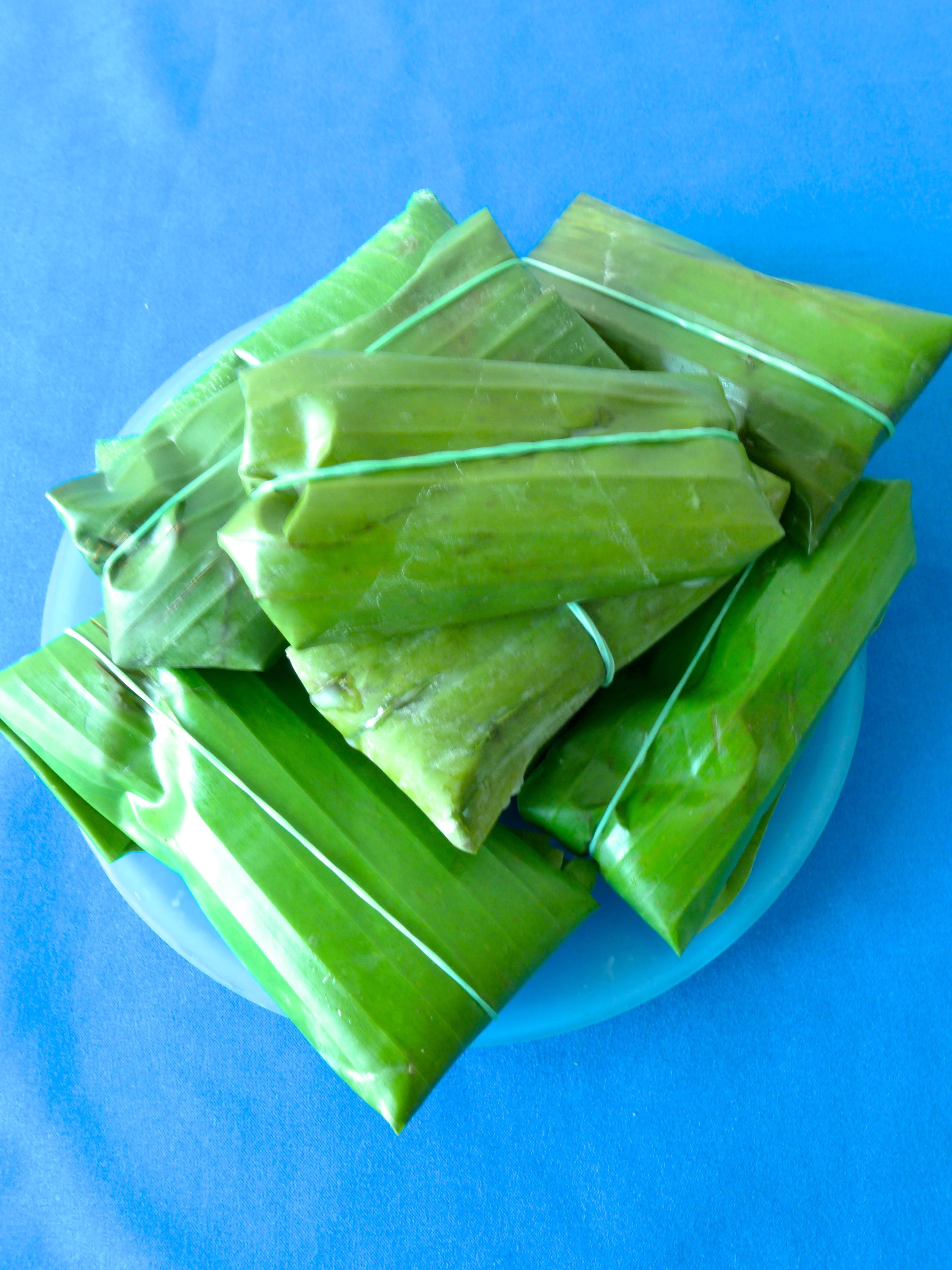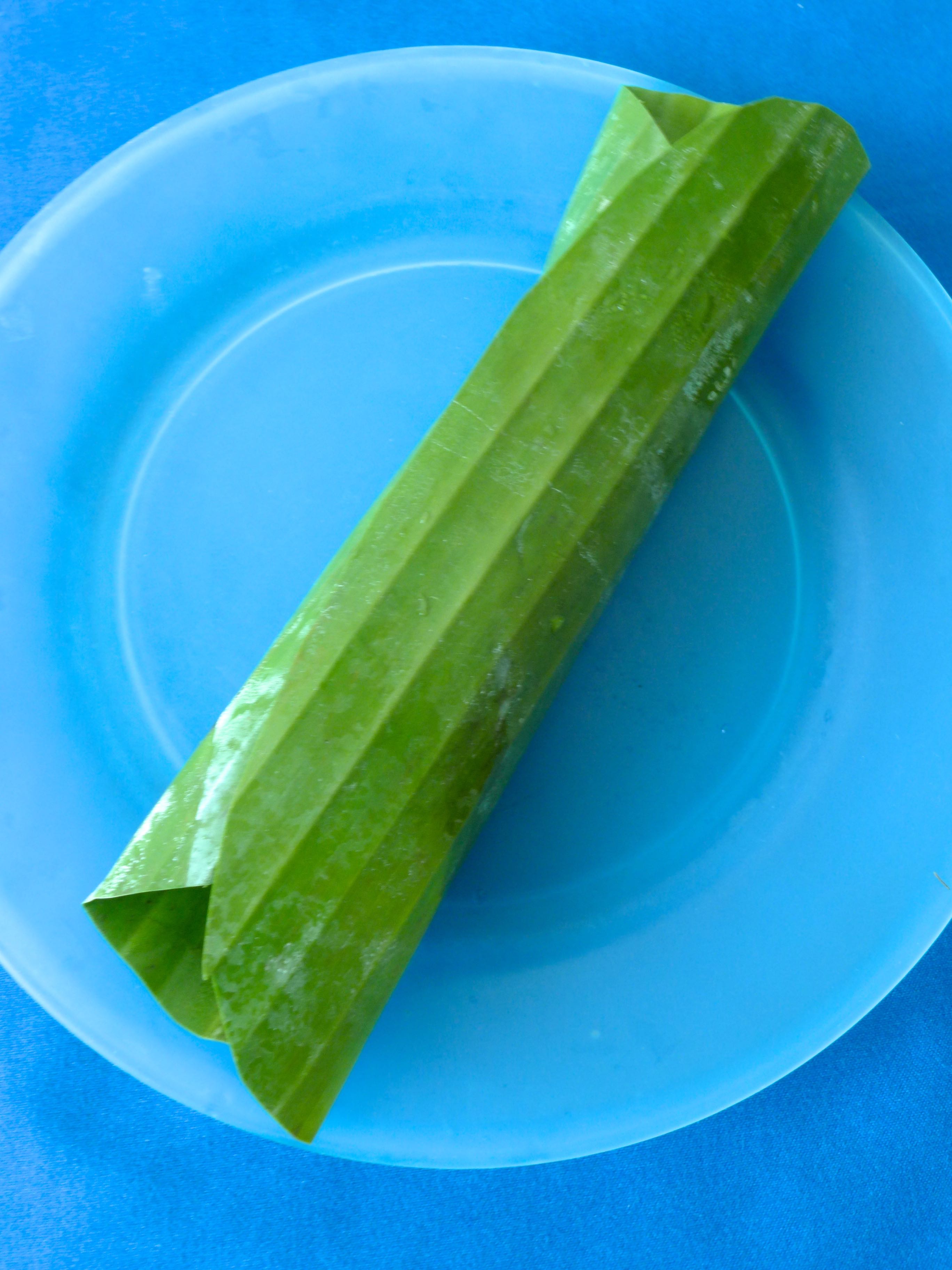 - hojas de plátano cortada en 8 láminas de 25×15 o 30×20 cm