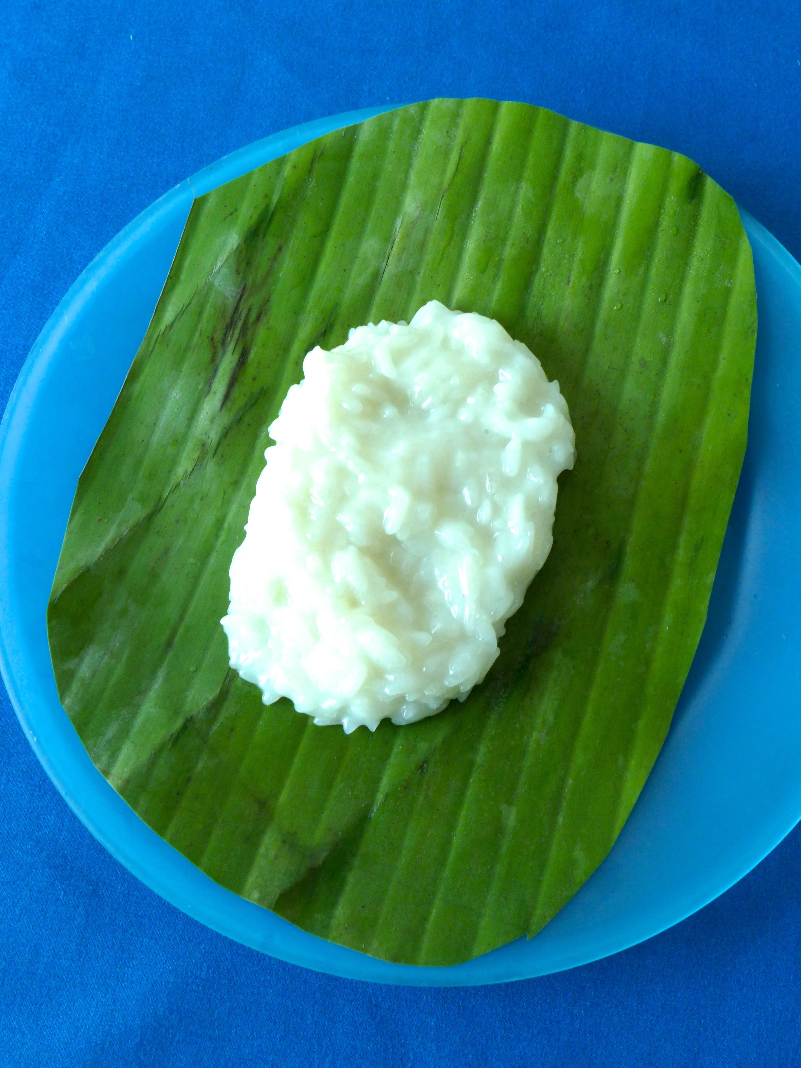 Añado la leche de coco, la sal y el azúcar. Lo dejo cocinar hasta que la leche de coco se haya evaporado y el arroz esté espeso y pegajoso, pero no hecho del todo (unos 15 a 20 minutos). Remuevo de vez en cuando.