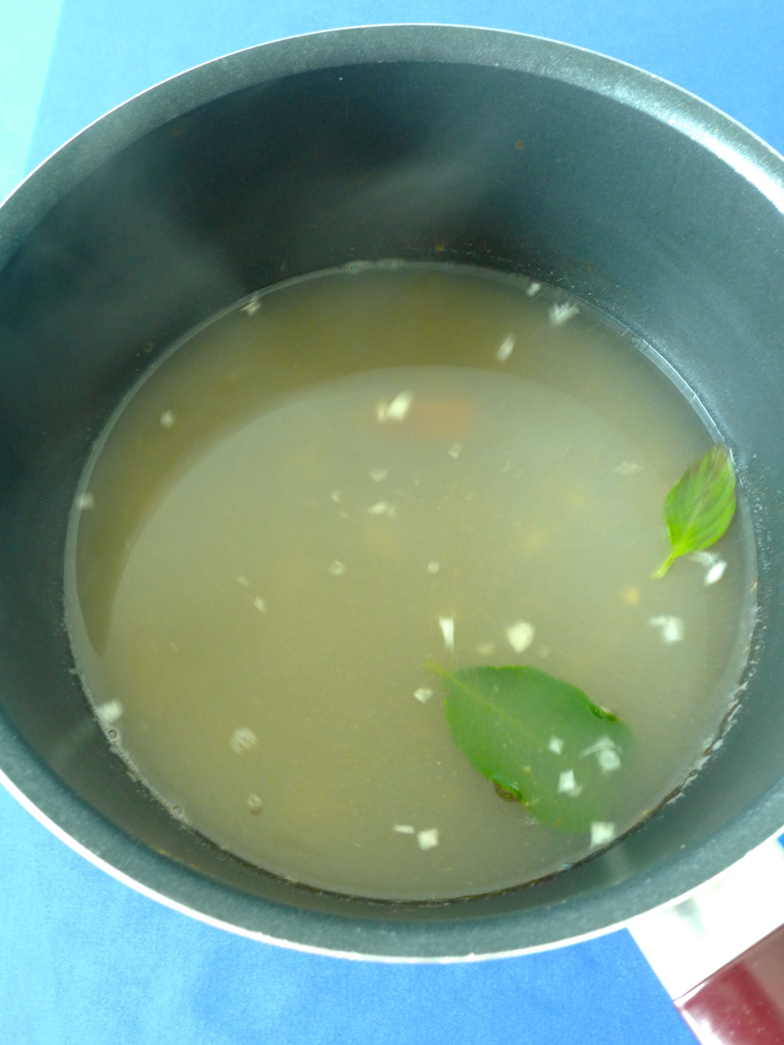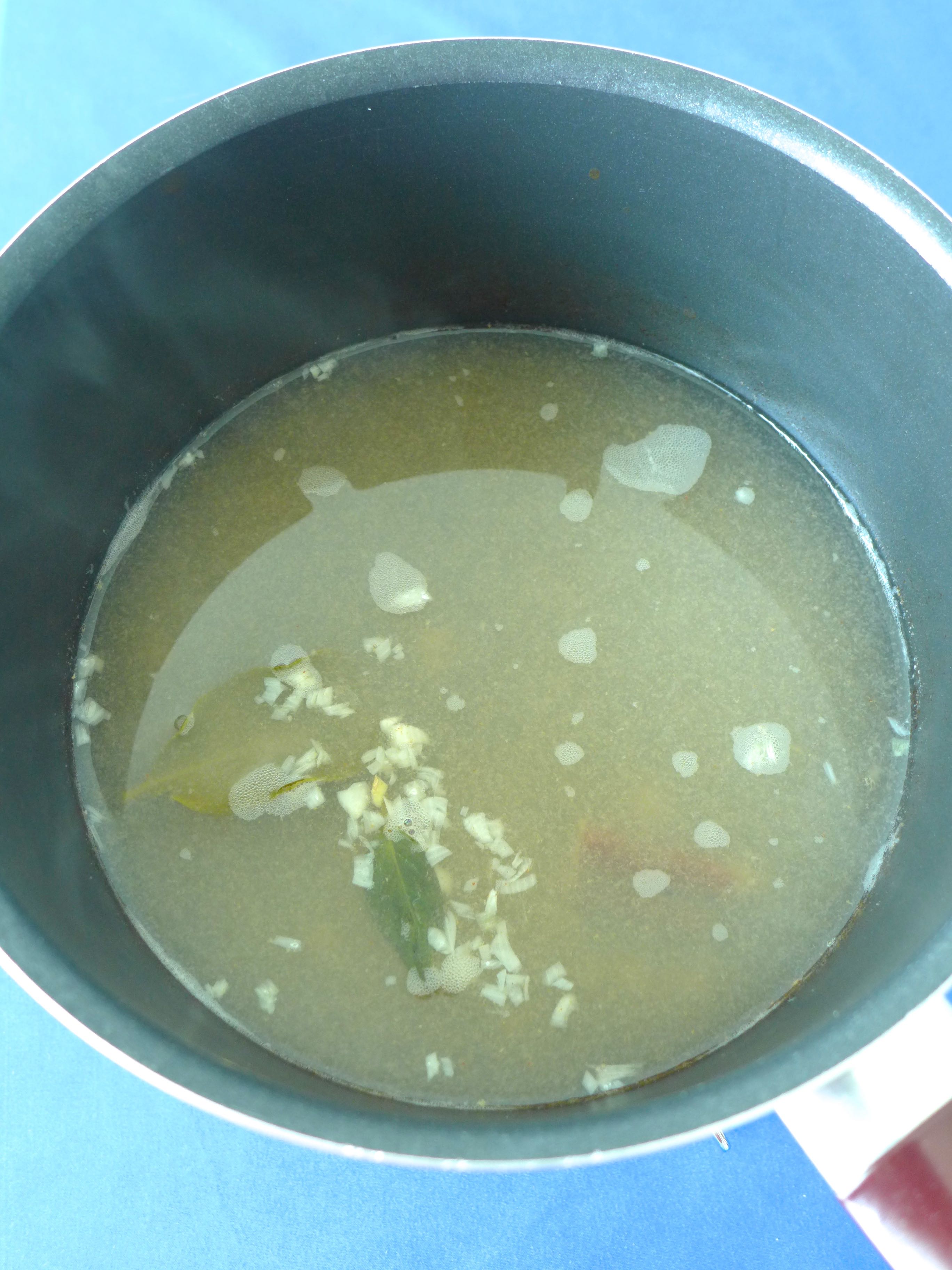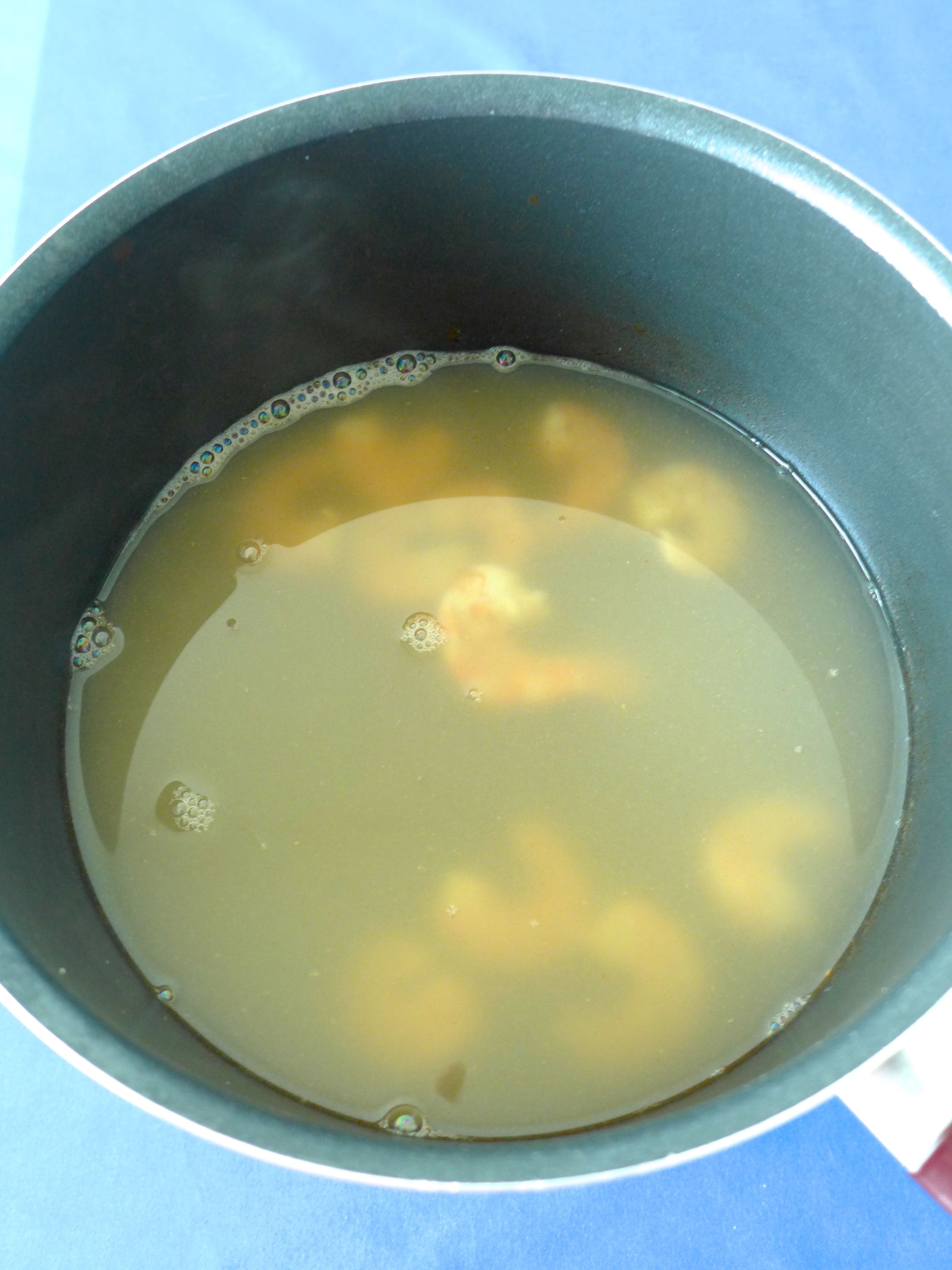 Añado las gambas al caldo y lo dejo cocer 30 segundos más.