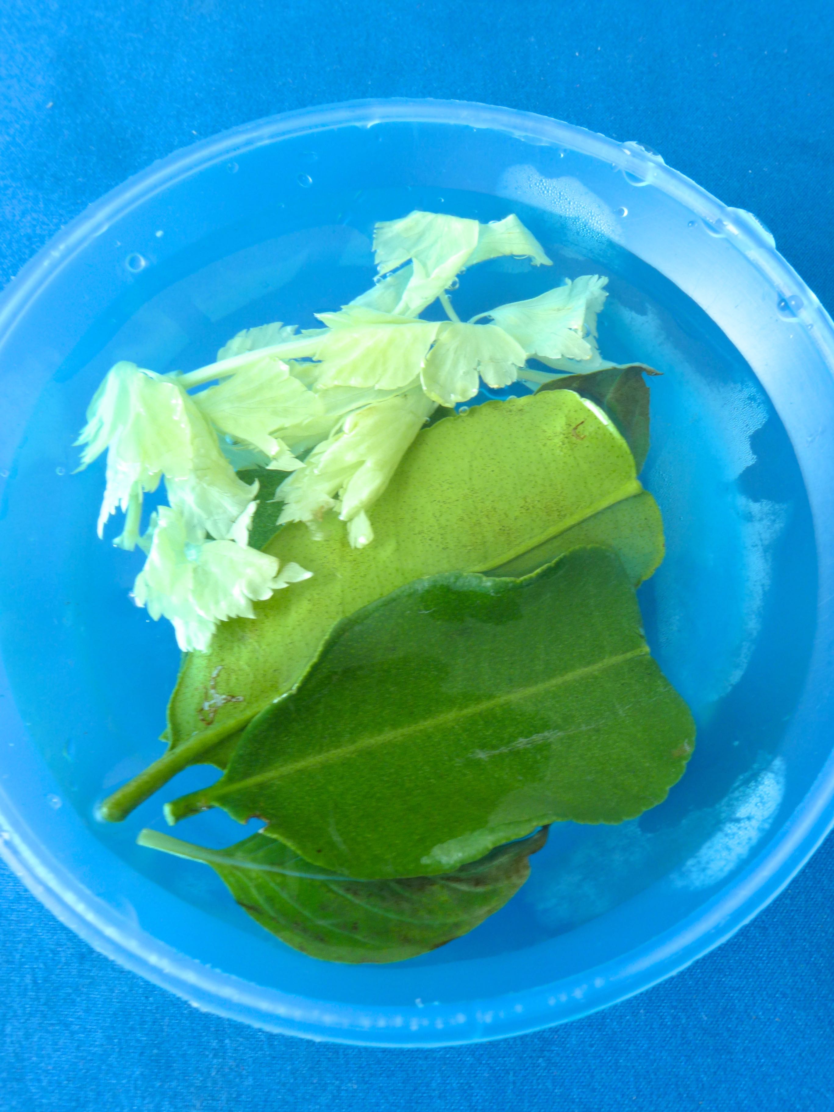Lavo las hojas de lima, albahaca y apio (o cilantro).