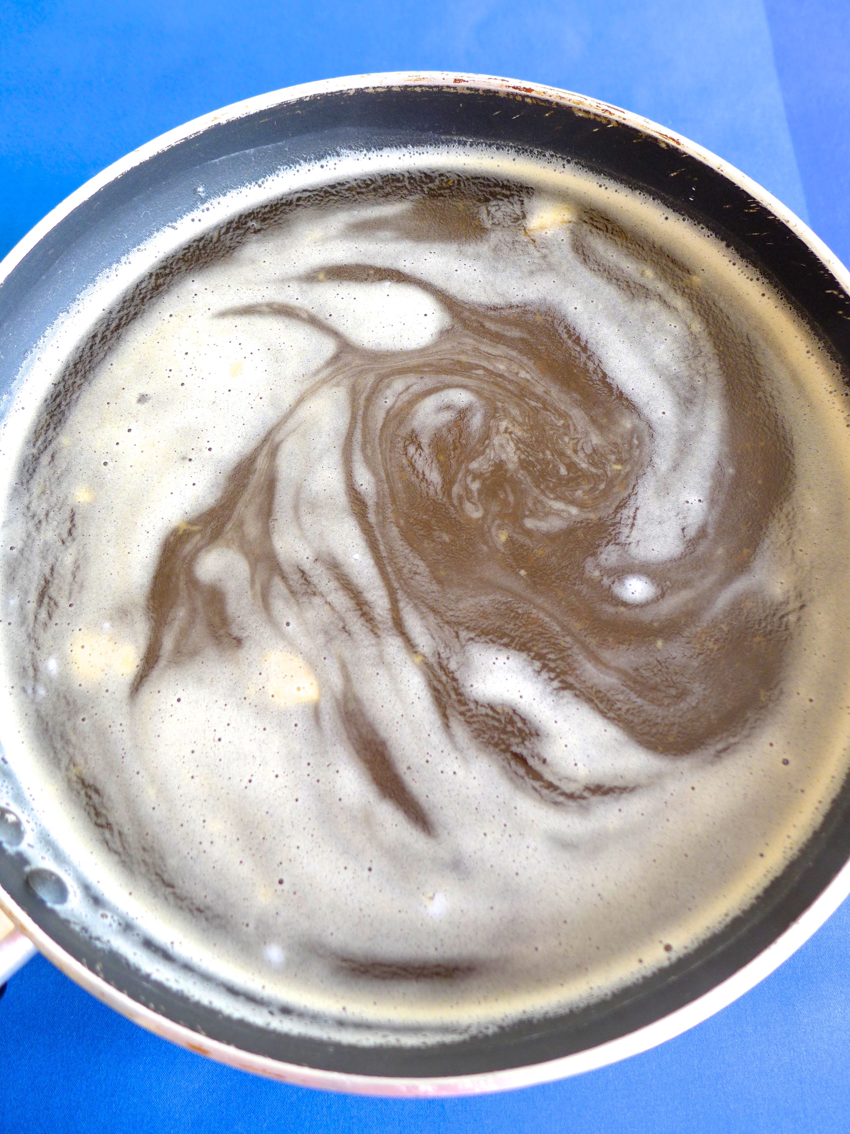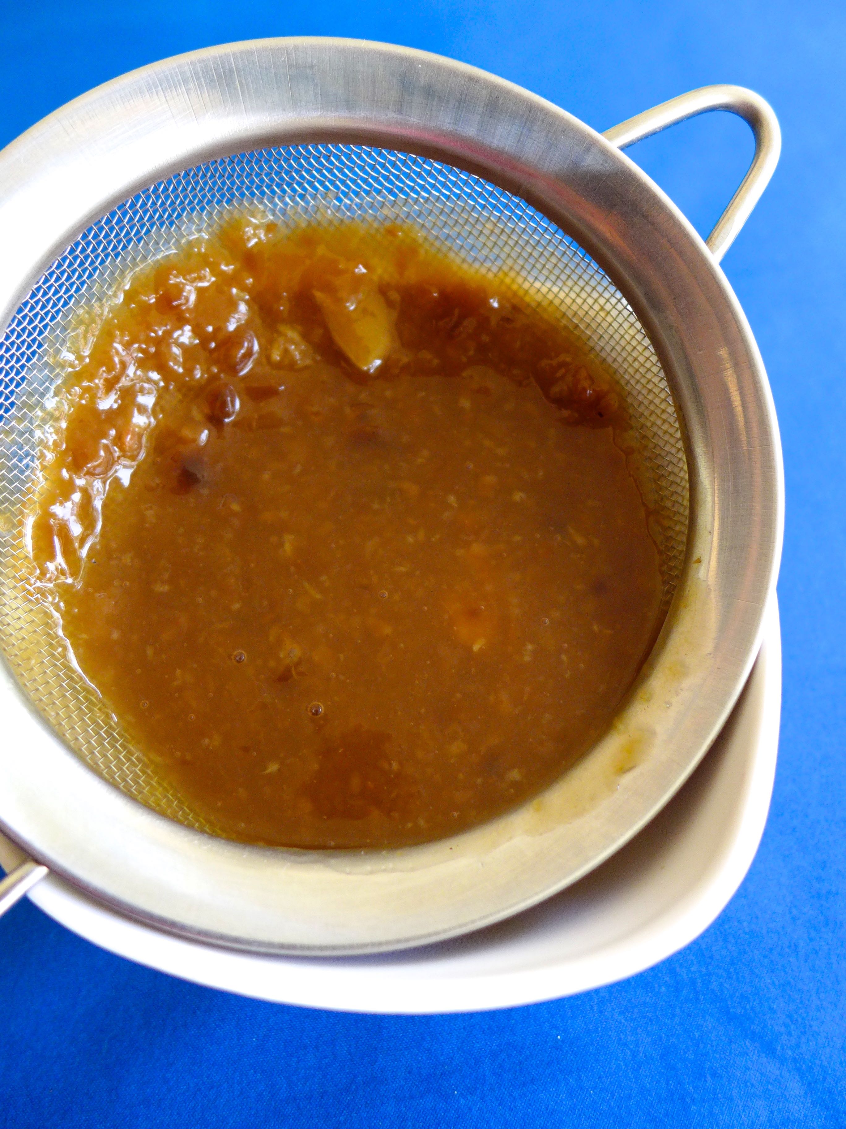 Rallo el jengibre. Disuelvo la maicena en 2 cucharaditas de agua. Mezclo, en una cazuela, el jengibre y la maicena con el resto de los ingredientes de la salsa y los dejo cocer hasta que espese (unos 5 minutos). Luego, cuelo la salsa.