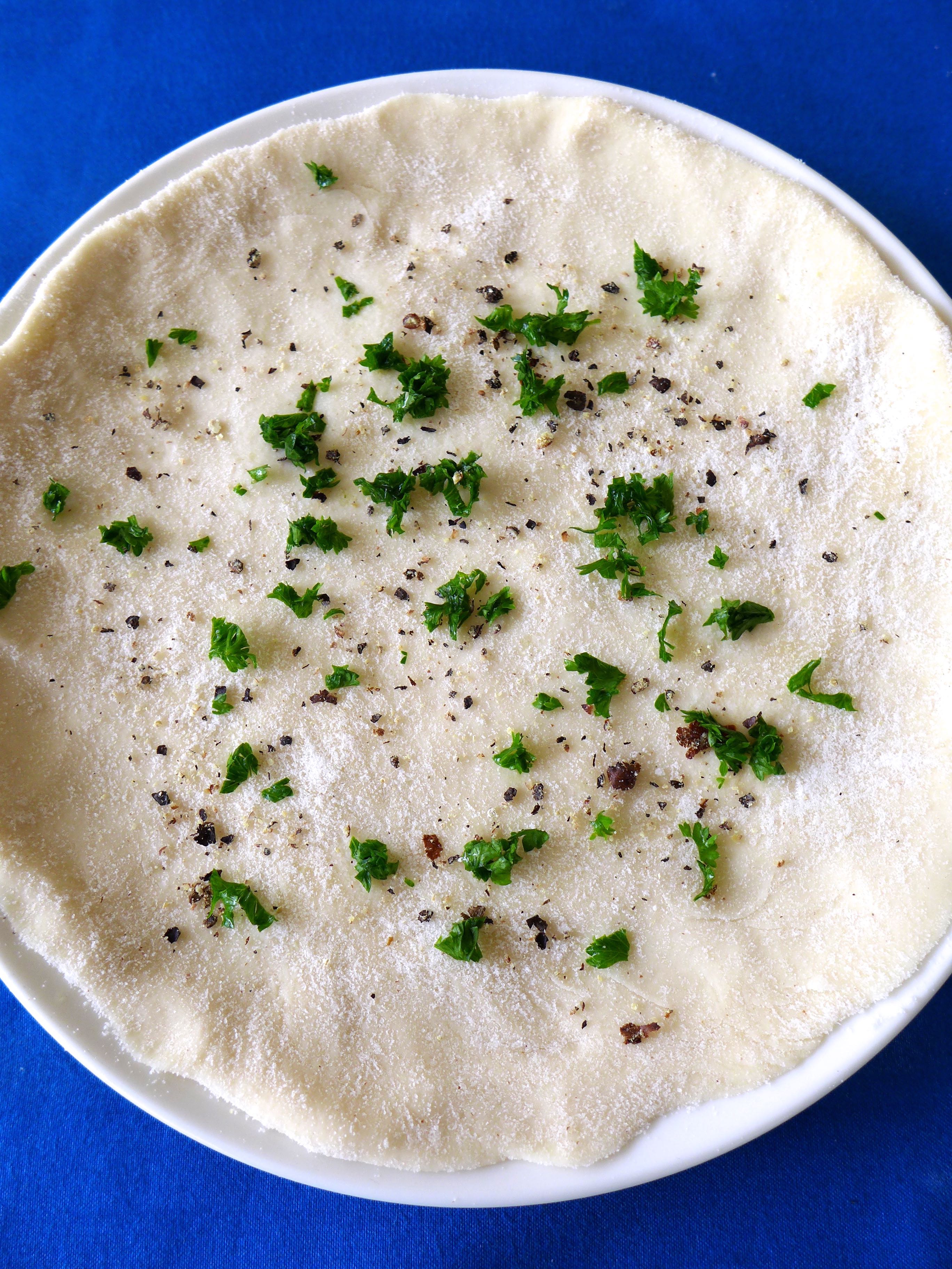 Coloco en el centro la pimienta, el perejil, la cebolla y el queso.
