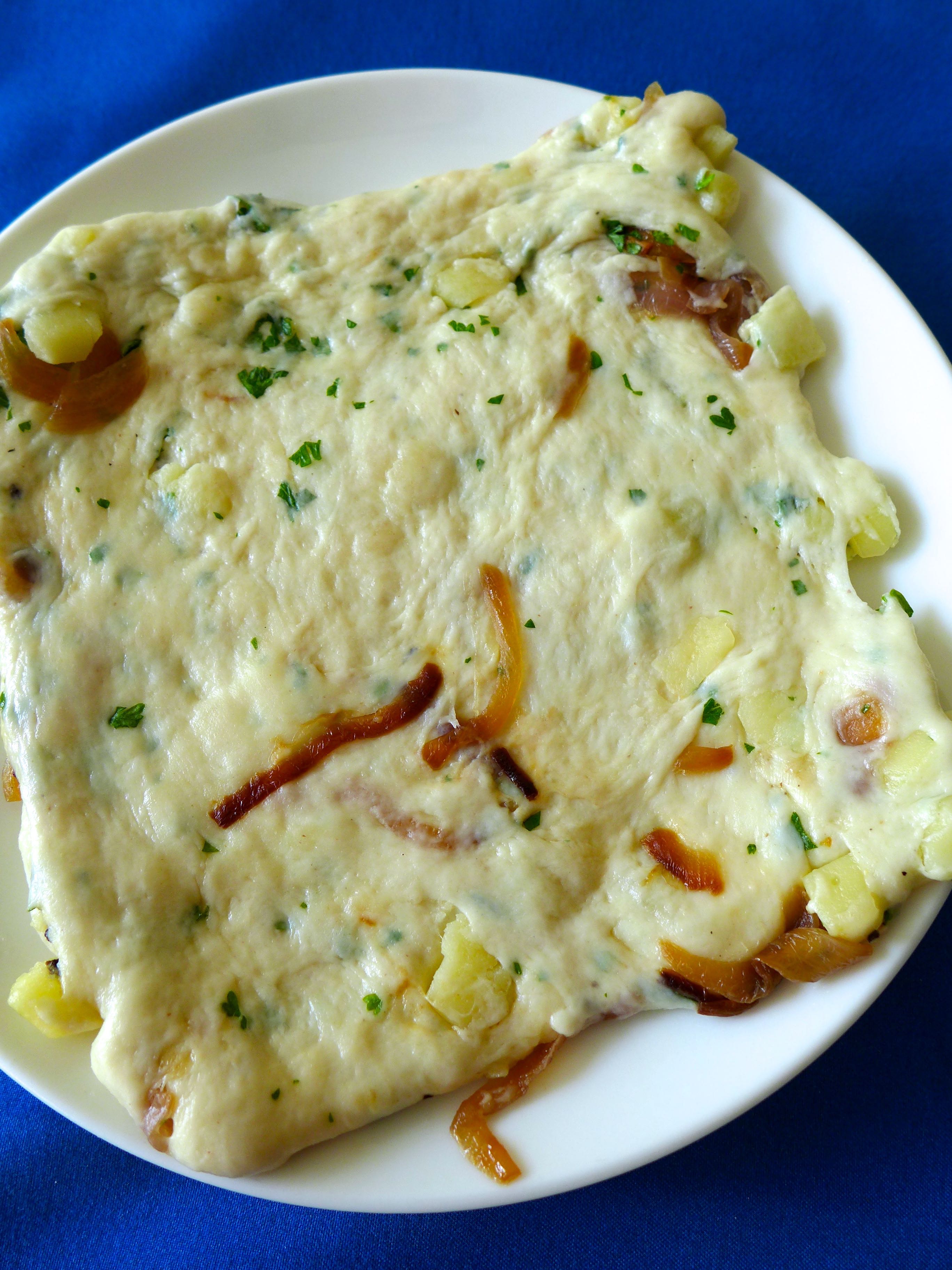 Mezclo la harina, el yogur, el agua, la mantequilla, la levadura y la sal, y lo amaso durante 10 minutos sobre una superficie enharinada. Luego, formo una bola y la dejo reposar cubierta con un film transparente o un paño en un sitio cálido durante una hora.
